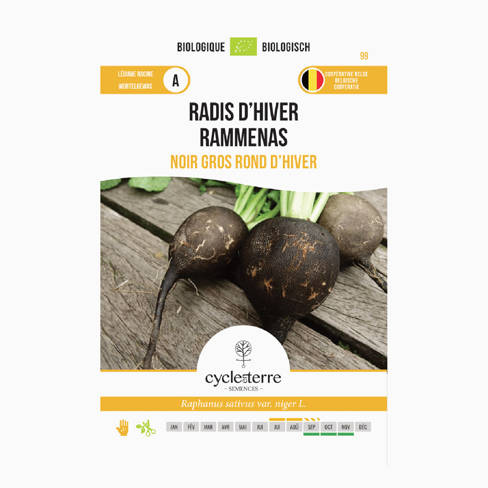 Sort vinterræddike, også kendt som rammenas, er en rodafgrøde, der er kendt for sin intense smag og fremragende holdbarhed ved opbevaring. Denne ræddike har en mørk skræl og et hvidt frugtkød og vokser til en rund ræddike med en diameter på cirka 9 cm.