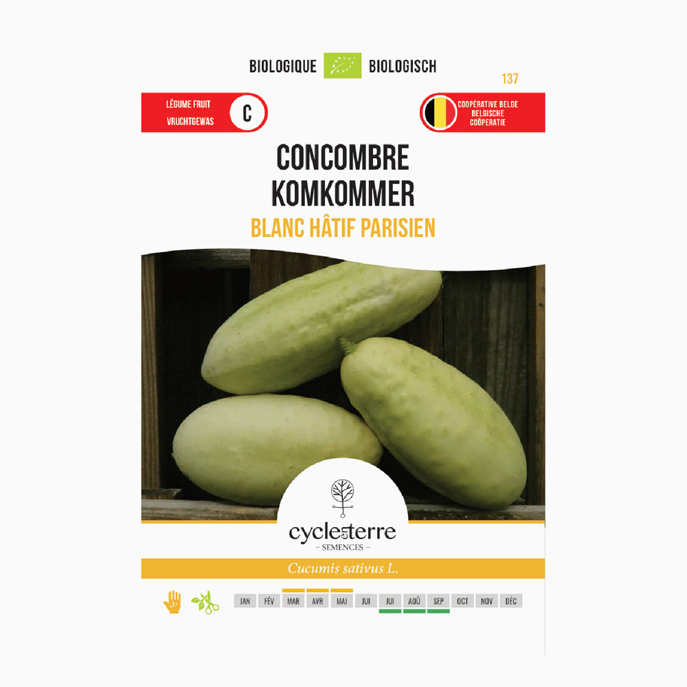Så 'Parijse Witte Lange' mellem marts og maj i en såbakke i en dybde på 2 cm. Når de unge planter er robuste nok, kan du fra midt i april udplante dem i et drivhus, eller fra midt i maj på friland. Hold her en planteafstand på 40 x 100 cm. Planterne trives bedst på et solrigt, læfyldt sted og har gavn af veldrænet, næringsrig jord. Ved dyrkning i drivhus kan du sætte produktionen i gang endnu tidligere. Regelmæssig vanding er vigtig for at holde frugterne saftige og velsmagende.