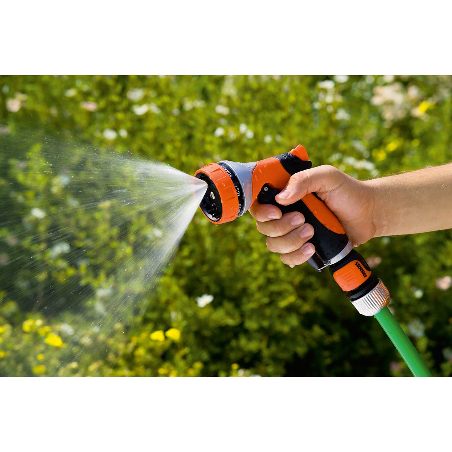 - 7 forskellige vandstråleindstillinger – nemt skift mellem vandstråleindstillinger ved at dreje på sprinklerhovedet.