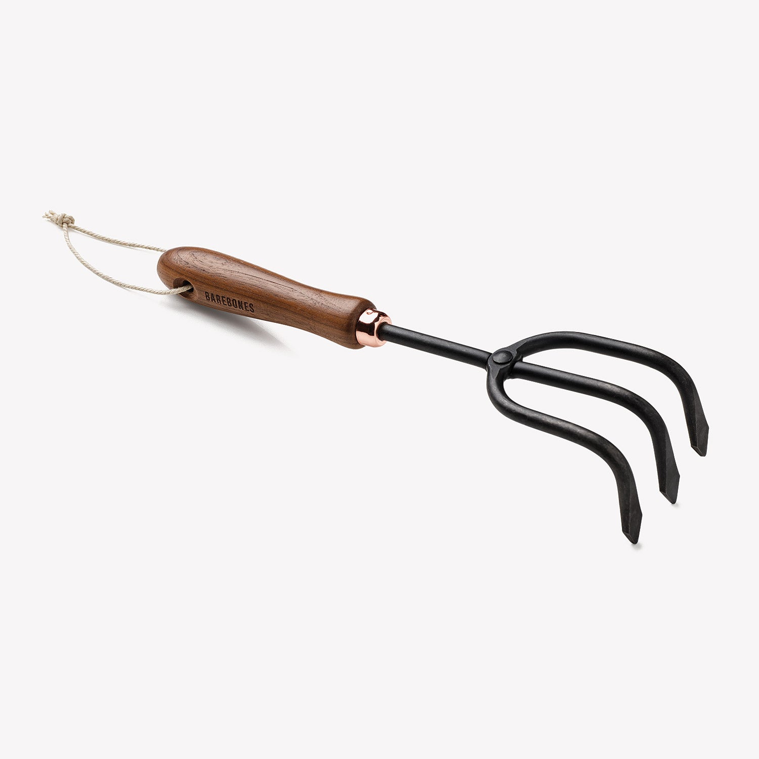 Barebones 'Cultivator' er måske det flotteste lille håndrive på markedet lige nu. Håndtaget i valnøddetræ kombineret med det mørke termohærdede stål giver et robust, men eksklusivt, udtryk. Riven er afsluttet med en fin kobberdetalje mellem håndtaget og gaffelen.