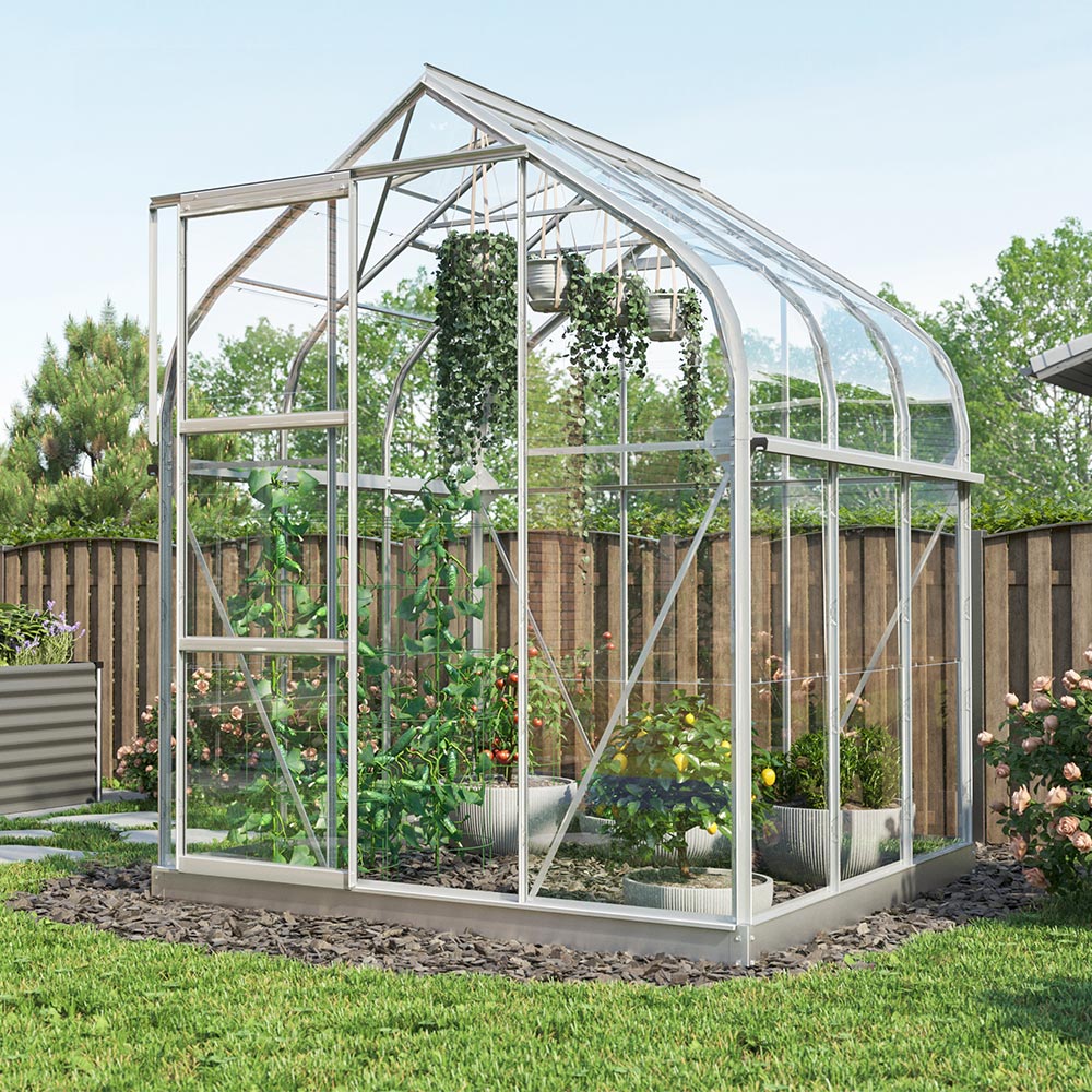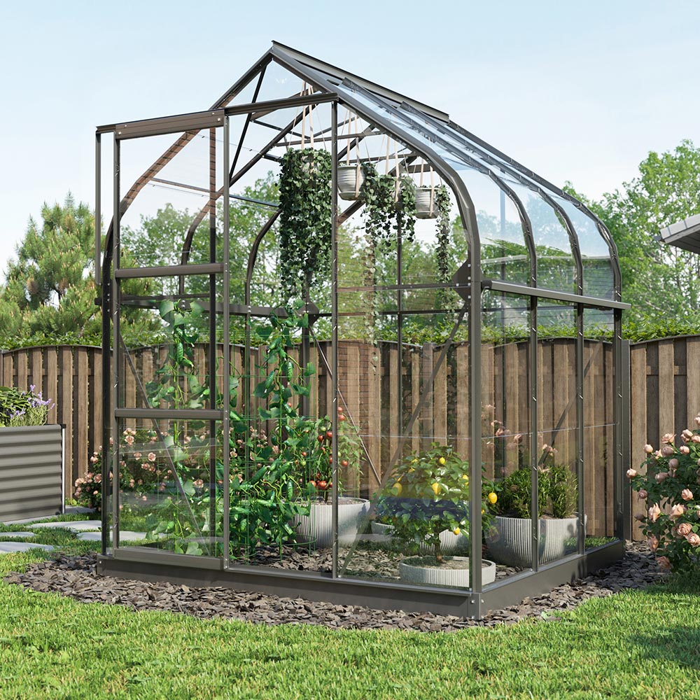 Orion 3800 har et elegant buet tag, som straks giver drivhuset et visuelt særpræg. Selvom gulvarealet er beskedent med 3,8m² gulvareal, skaber den generøse kipshøjde en overraskende rummelig fornemmelse, hvor planterne trives, og der er også fint plads til en lille arbejdsplads eller et siddehjørne.