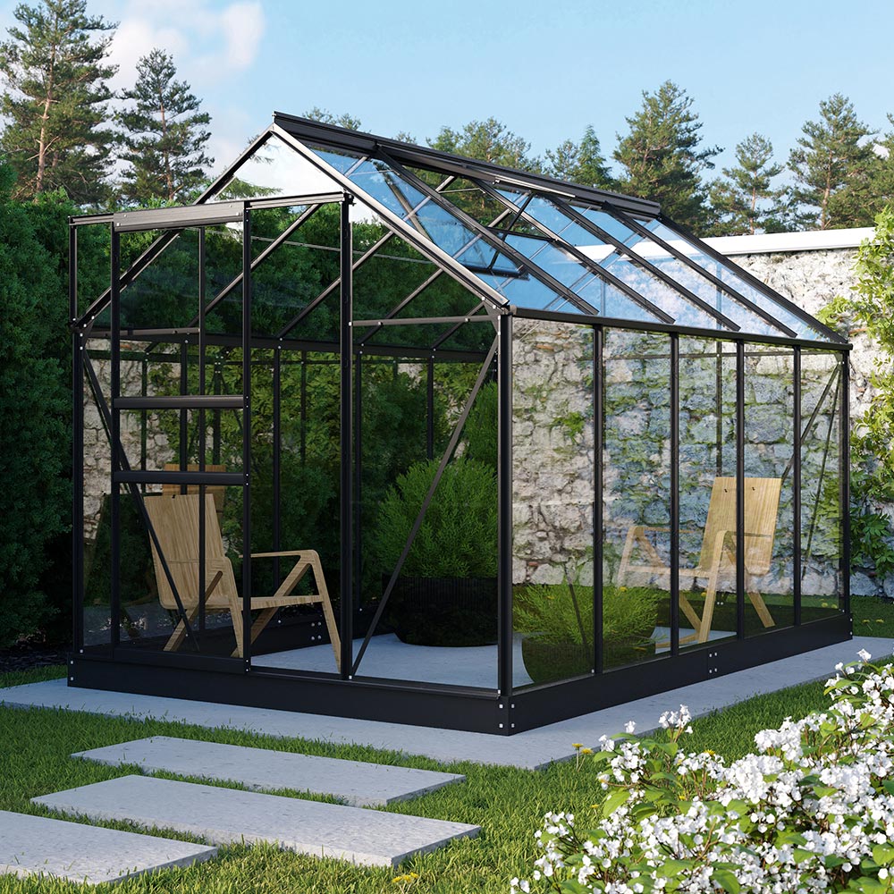 Vitavia Planet 6200 er et rummeligt og velafbalanceret drivhus til haveejeren, der lægger vægt på lys, stabilitet og komfort. Med et gulvareal på 6,2m² giver denne model god plads til at så, tage stiklinger og passe planter. De lige vægge giver en behagelig rummelig fornemmelse og gør drivhuset velegnet til både fritstående placering og integrering i en moderne have.