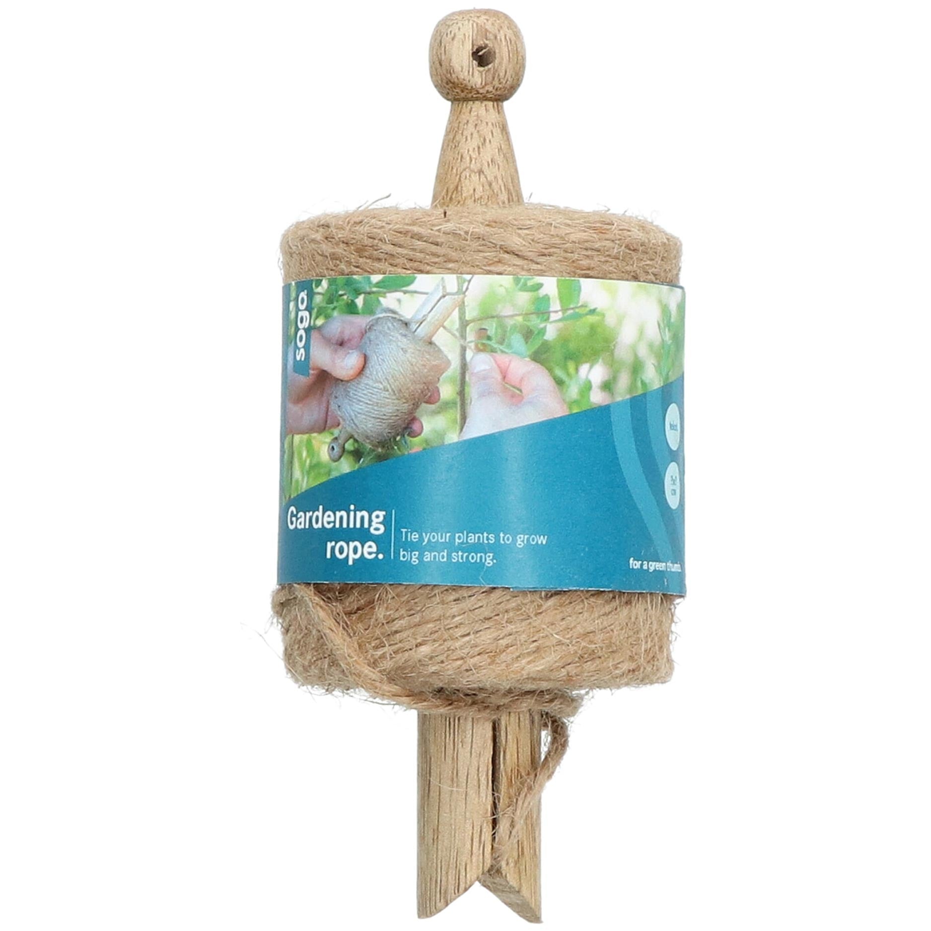 Denne jute-havesnor er ideel til mange forskellige haveopgaver: opbinding og støtte af planter, fastgørelse af stængler til en pind eller et espalier, samt bundtning af høstede krydderurter eller blomster. Snoren er smidig nok til at arbejde let med, men robust nok til at støtte planterne godt uden at beskadige dem.