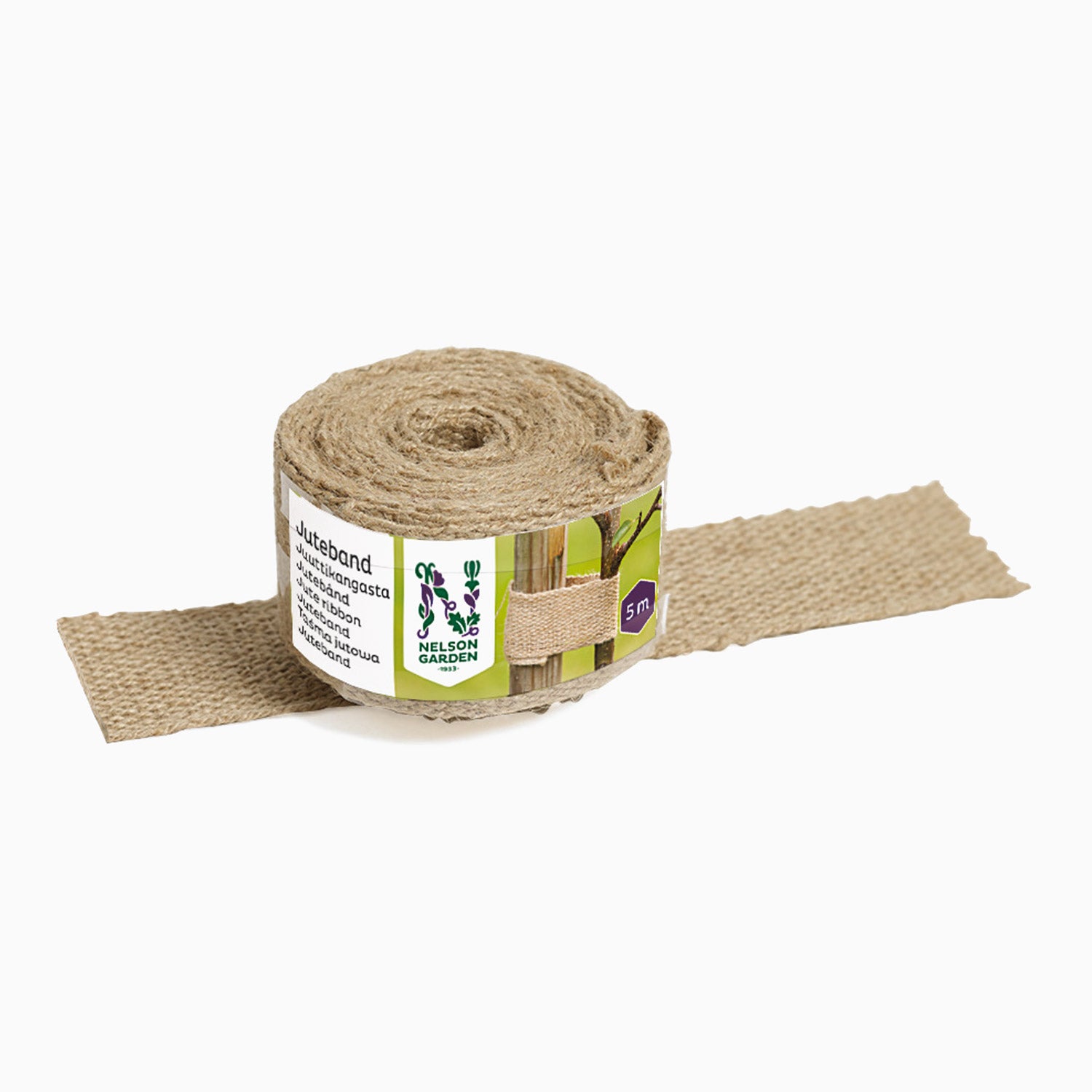Dette jutebånd er et naturfiberbånd af jute med en bredde på 6 cm og en længde på 5 meter (500 cm). Det er beregnet til at støtte, binde sammen eller dekorere planter, små træer eller blomster. På grund af styrken og fiberstrukturen egner båndet sig godt til brug i haven og udendørs.