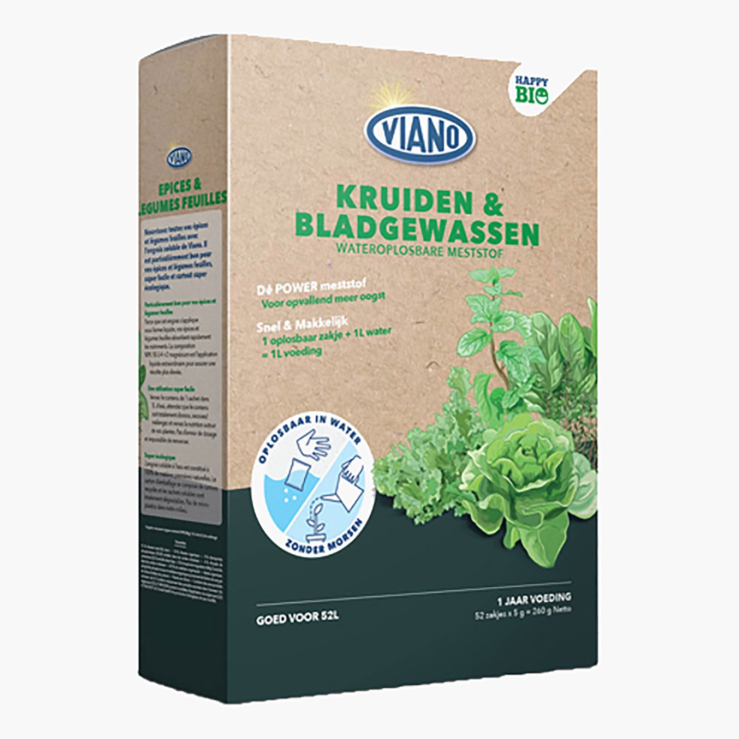 Viano HAPPY BIO vandopløselig gødning til krydderurter og bladgrøntsager er 100 % naturlig i oprindelse og anvendes til gødskning af Deres have- og køkkenurter samt bladgrøntsager (for eksempel salat, endivie). Det høje kvælstofindhold i denne formel sikrer en god, afbalanceret vækst. Tilstedeværelsen af ekstra magnesium i denne formel giver en intens grøn farve. Viano HAPPY BIO vandopløselig gødning til krydderurter og bladgrøntsager kan anvendes som vedligeholdelsesgødning efter plantning i potte, container, udendørs på terrasse, i drivhus eller indendørs.