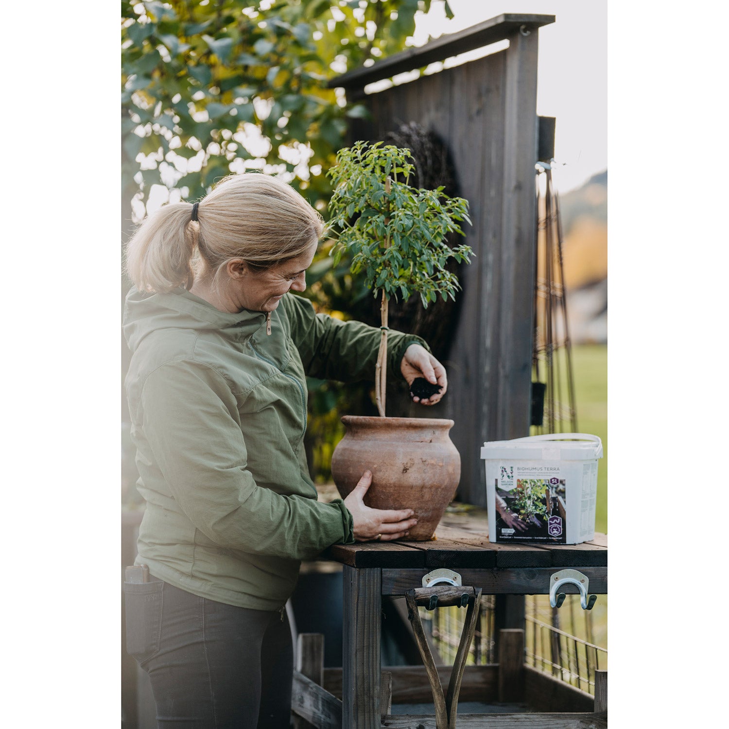 Biohumus Terra kan bruges på flere måder. Du kan for eksempel tilføje et lag på 2cm til dine planter i potter. Bland det derefter ind. Hvis du skal ompotte en plante, kan du blande den nye pottemuld med 20% Biohumus, så planten får næring med det samme. Til sidst kan du blande 1 del Biohumus med 5 dele vand i din vandkande; så skal du blot vande dine planter med det. Større planer? Brug 1 spand pr. kvadratmeter køkkenhave for at forbedre jorden.