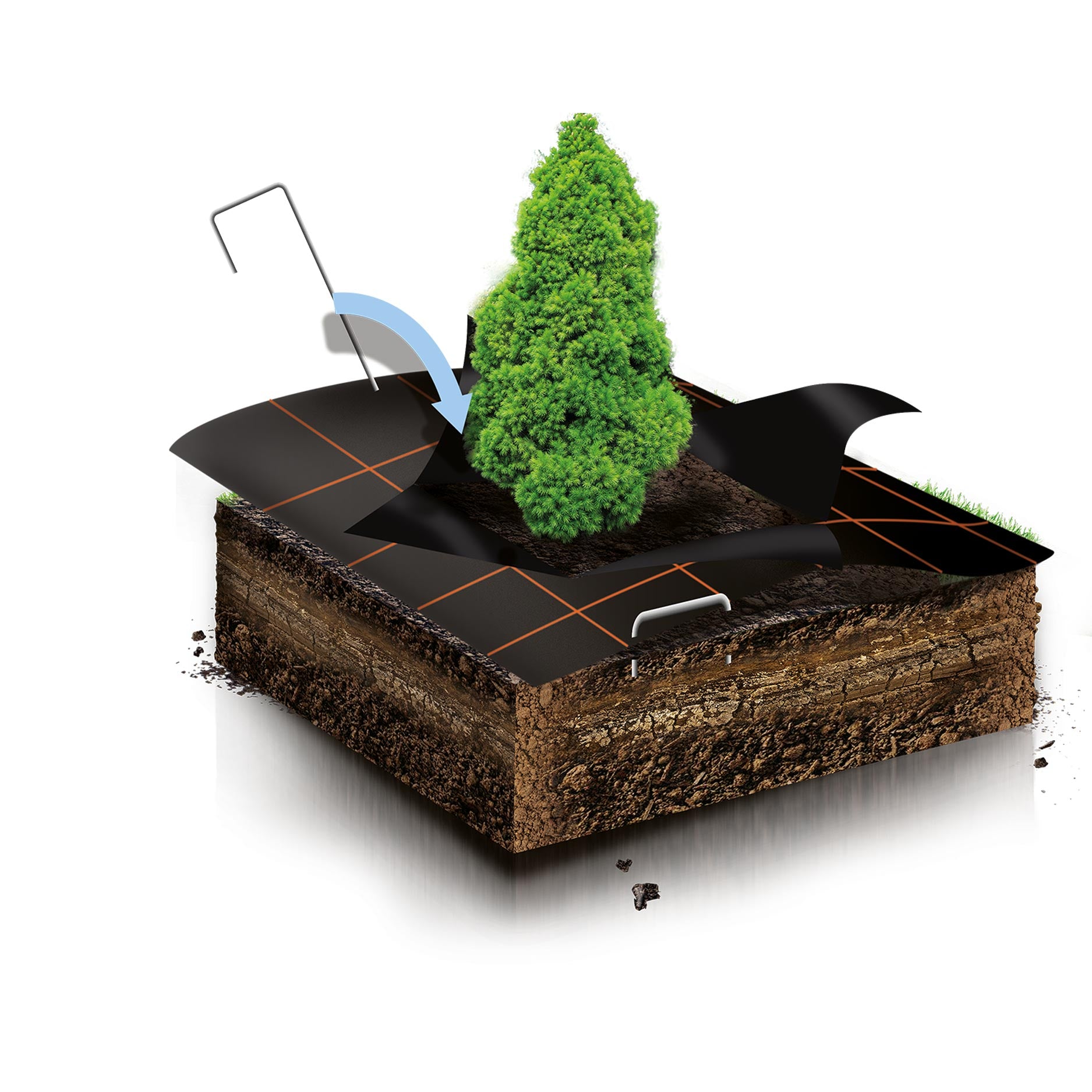 Du ruller dugen ud over et jævnt, ukrudtsfrit underlag og skærer den til omkring planter eller bede. Den fastgøres med jordspyd og kan eventuelt dækkes med barkflis eller grus. Dugen lader luft og vand passere, men blokerer lys, så ukrudt ikke får en chance.