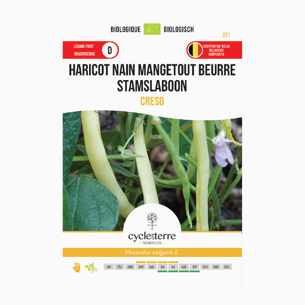 Sperzieboon 'Beurre Creso', også kendt som den gule haricots verts, er en tidligt modnende og produktiv dværgvariant. Denne bønne er kendt for sine lige, fine gule bælge, som bliver cirka 15 cm lange.