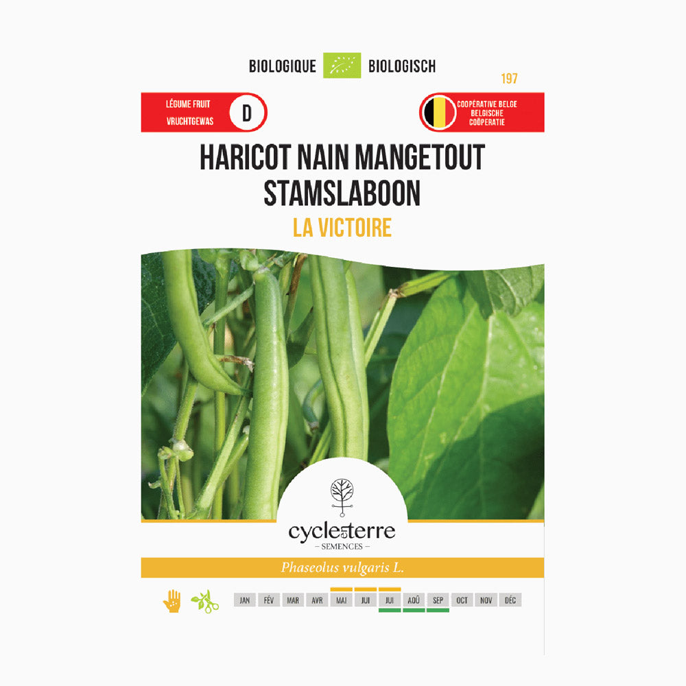 'La Victoire' er en kraftig og produktiv sort, der trives godt på friland. Så bønnerne fra midten af maj til midten af juli direkte på voksestedet. Sørg for en sådybde på 3 cm, med 8 til 10 cm mellem planterne og 40 til 60 cm mellem rækkerne. Planterne vokser bedst på en solrig plads i veldrænet, frugtbar jord. Gødskning er som regel ikke nødvendig, men en let tilførsel af kompost kan understøtte væksten. Bønnerne kan høstes fra august og til sent på sommeren, afhængigt af såtidspunktet.