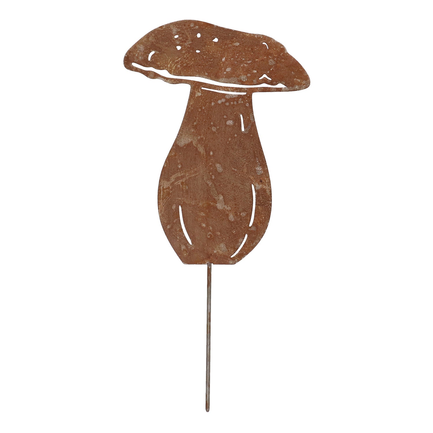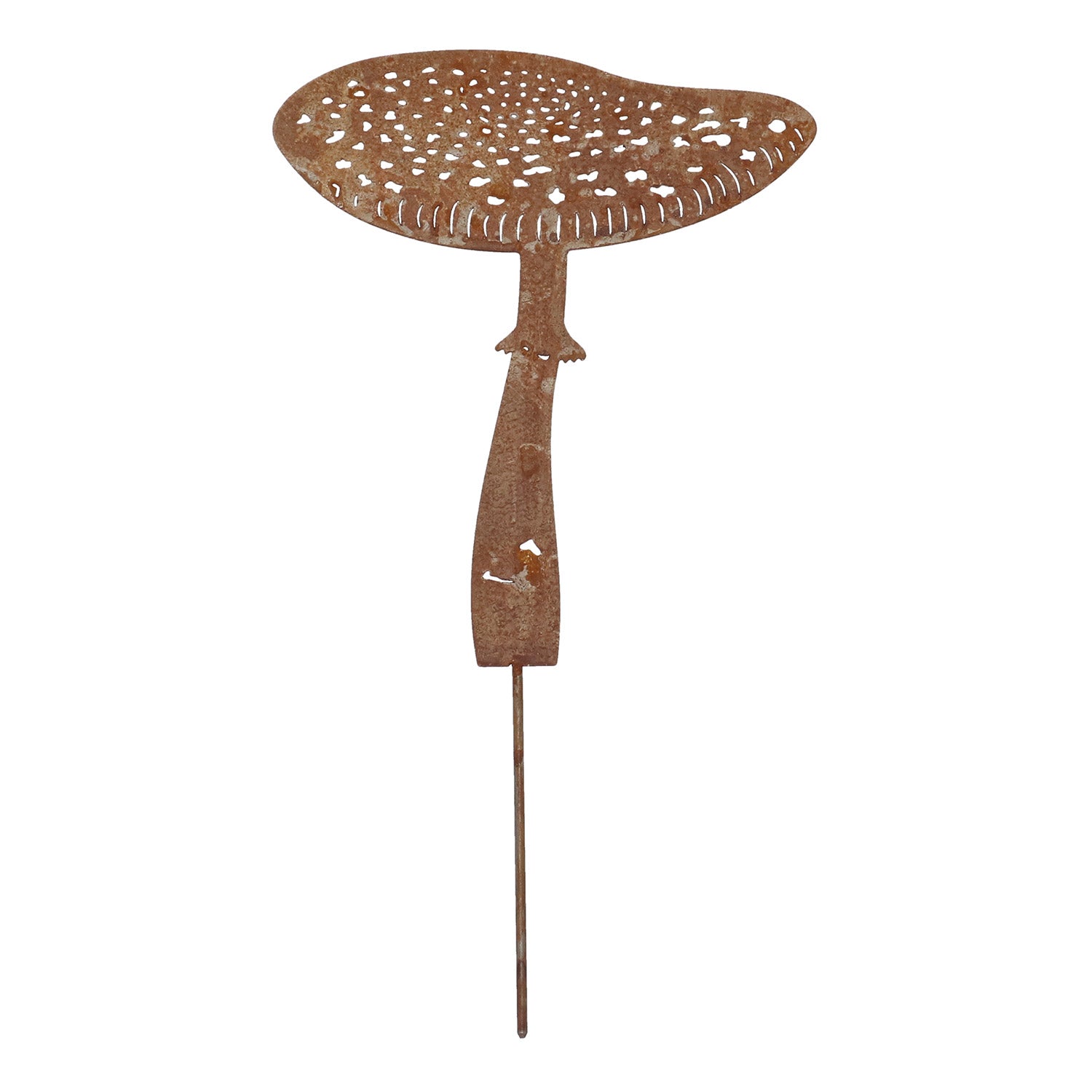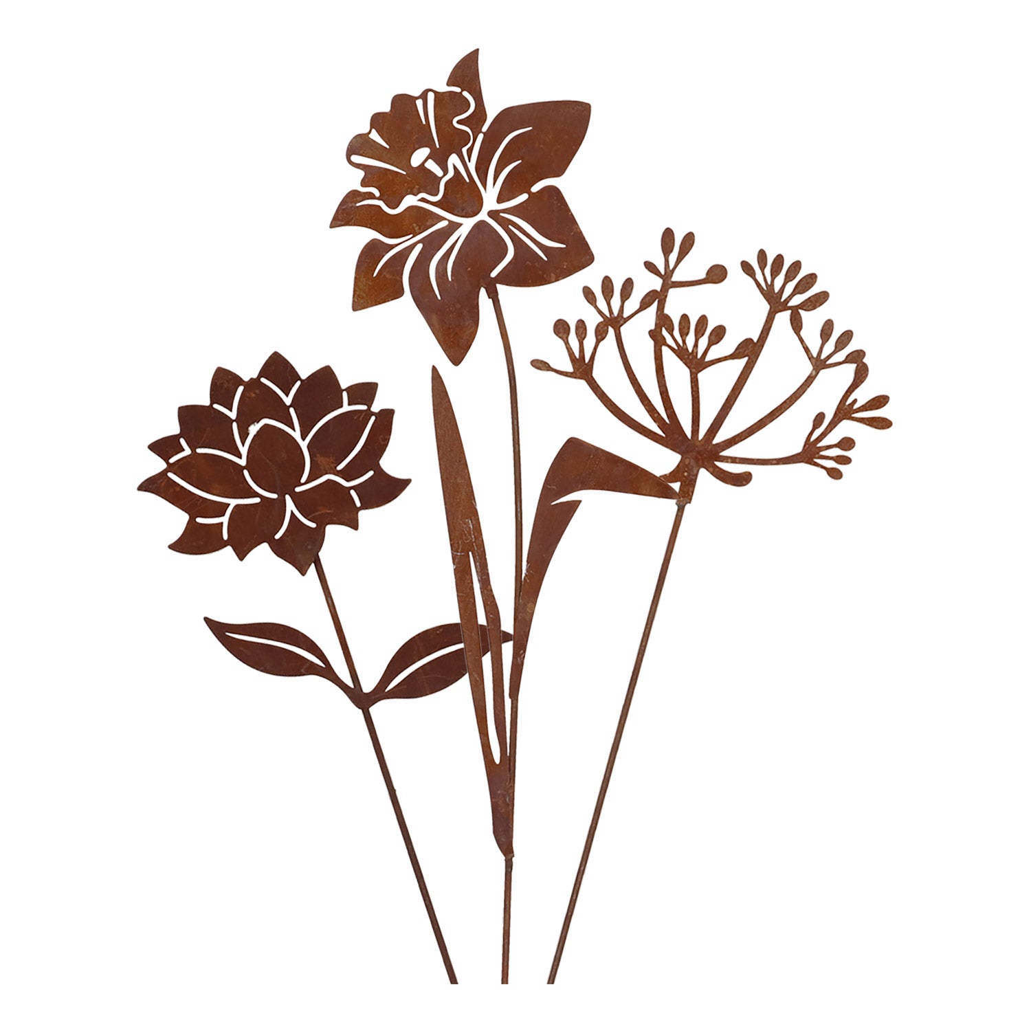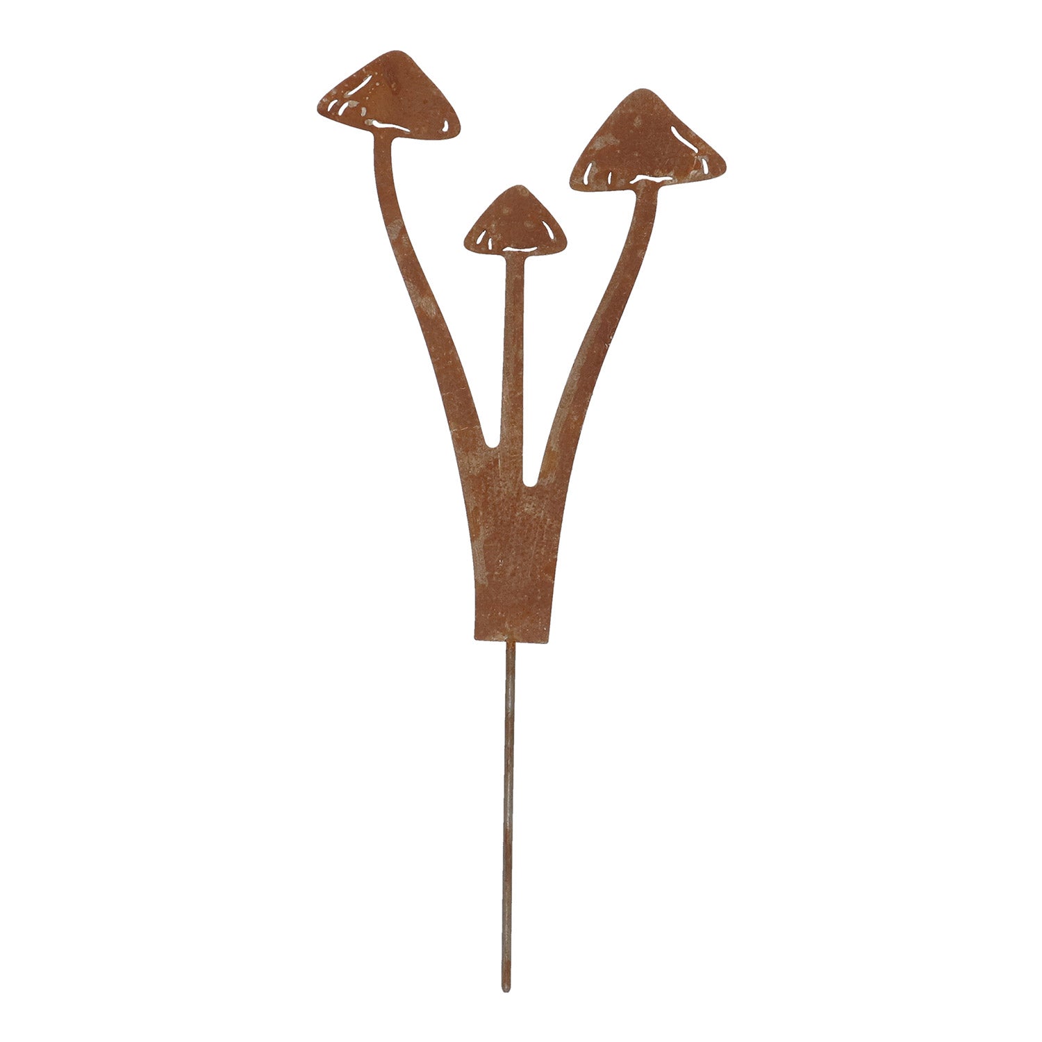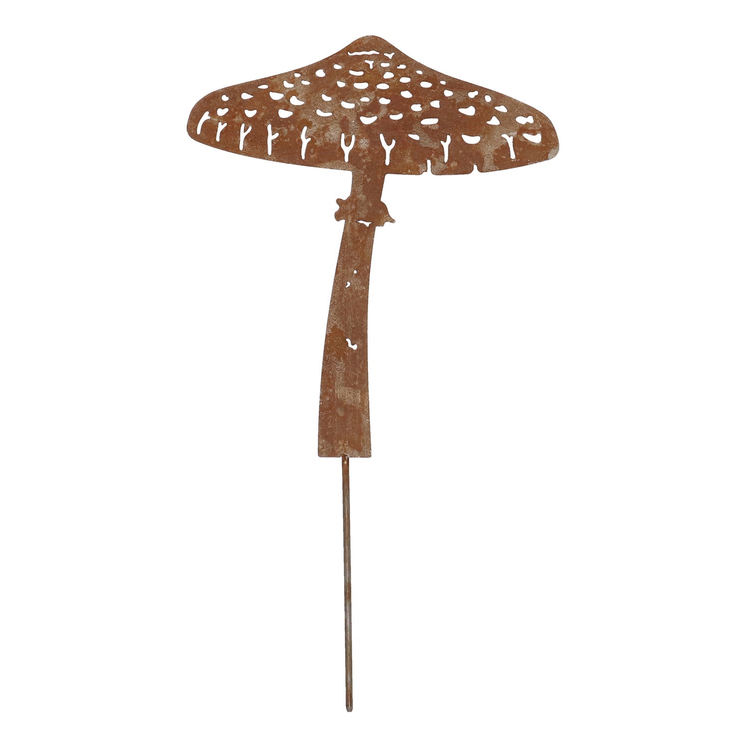 Denne havestik er et dekorativt ornament i metal i form af elegante blomster og svampe. Den er fremstillet af holdbart stål med en naturlig rustfinish, som giver et varmt, rustikt udtryk. Takket være det fine laserskårne design er den et diskret, men stilfuldt blikfang i enhver have.