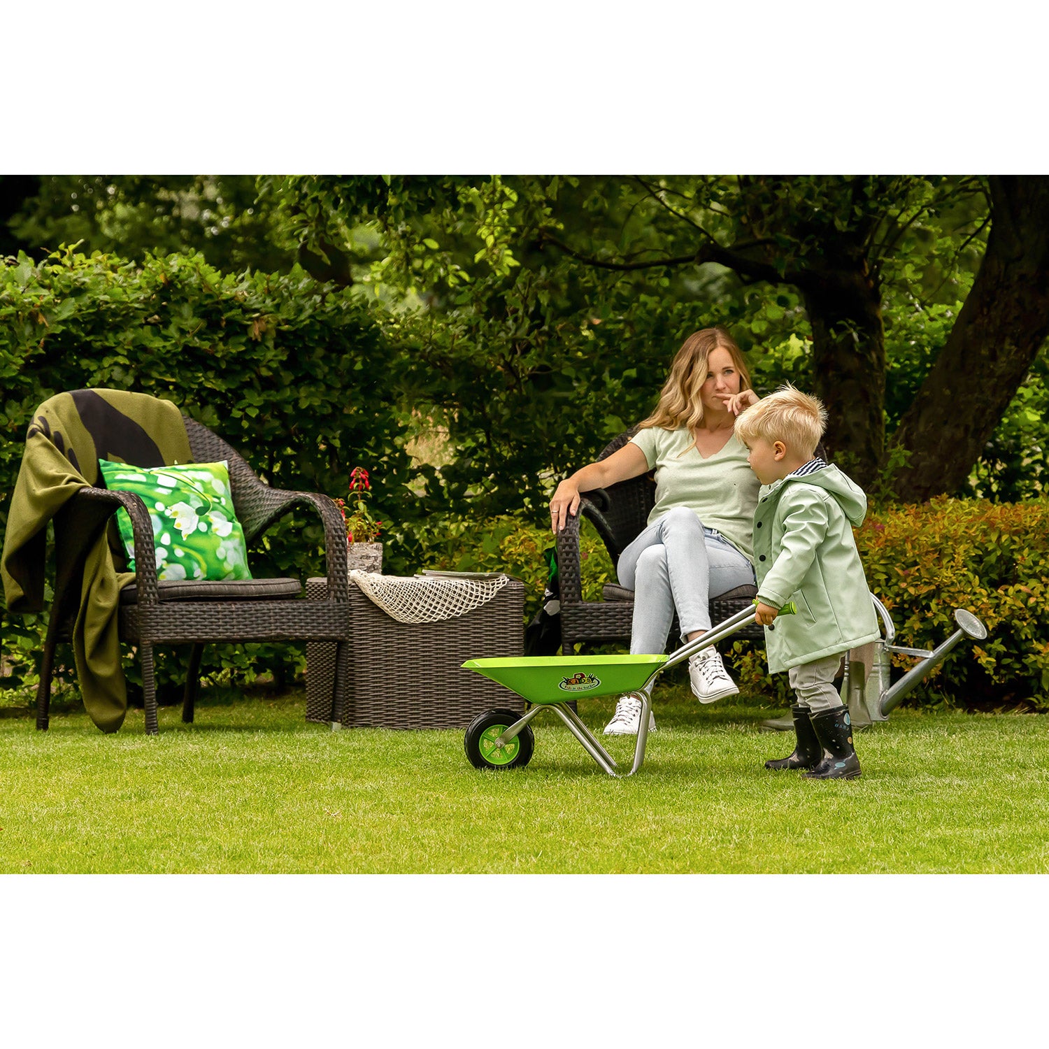 Børn er nysgerrige og vil gerne hjælpe til i haven, ligesom bedsteforældre eller deres forældre. Denne metaltrillebør er den perfekte måde at give dem en rolle i haven og opdage udelivet på. Uanset om det handler om at samle blade, transportere små planter eller bare have det sjovt – med deres egen trillebør føler børn sig som ægte havehelte!