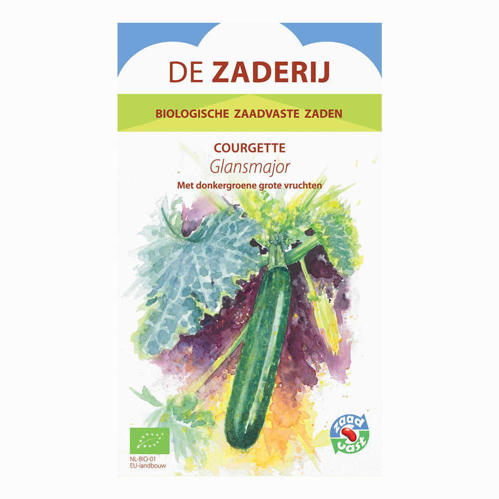 Glansmajor er en økologisk courgette med en rolig, ensartet vækst og en åben planteopbygning. De mørkegrønne frugter er faste, fulde af smag og bevarer deres kvalitet, også når de høstes lidt større. Takket være den åbne vækstform er frugterne lette at se og nemme at plukke.