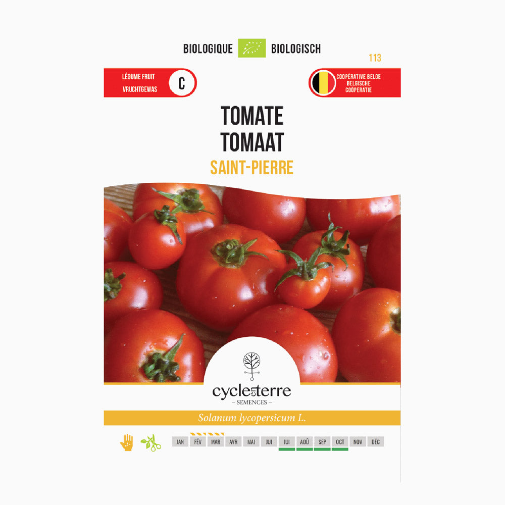 Saint Pierre er en traditionel fransk tomat, kendt for sin fyldige, klassiske tomatsmag og pålidelige vækst. Planterne danner mellemstore, dybrøde frugter, som er faste, forbliver saftige og har en fin balance mellem sødt og syrligt. Planten vokser kraftigt, danner lange klaser og har en åben vækstform, så frugterne kan modne godt i solen.