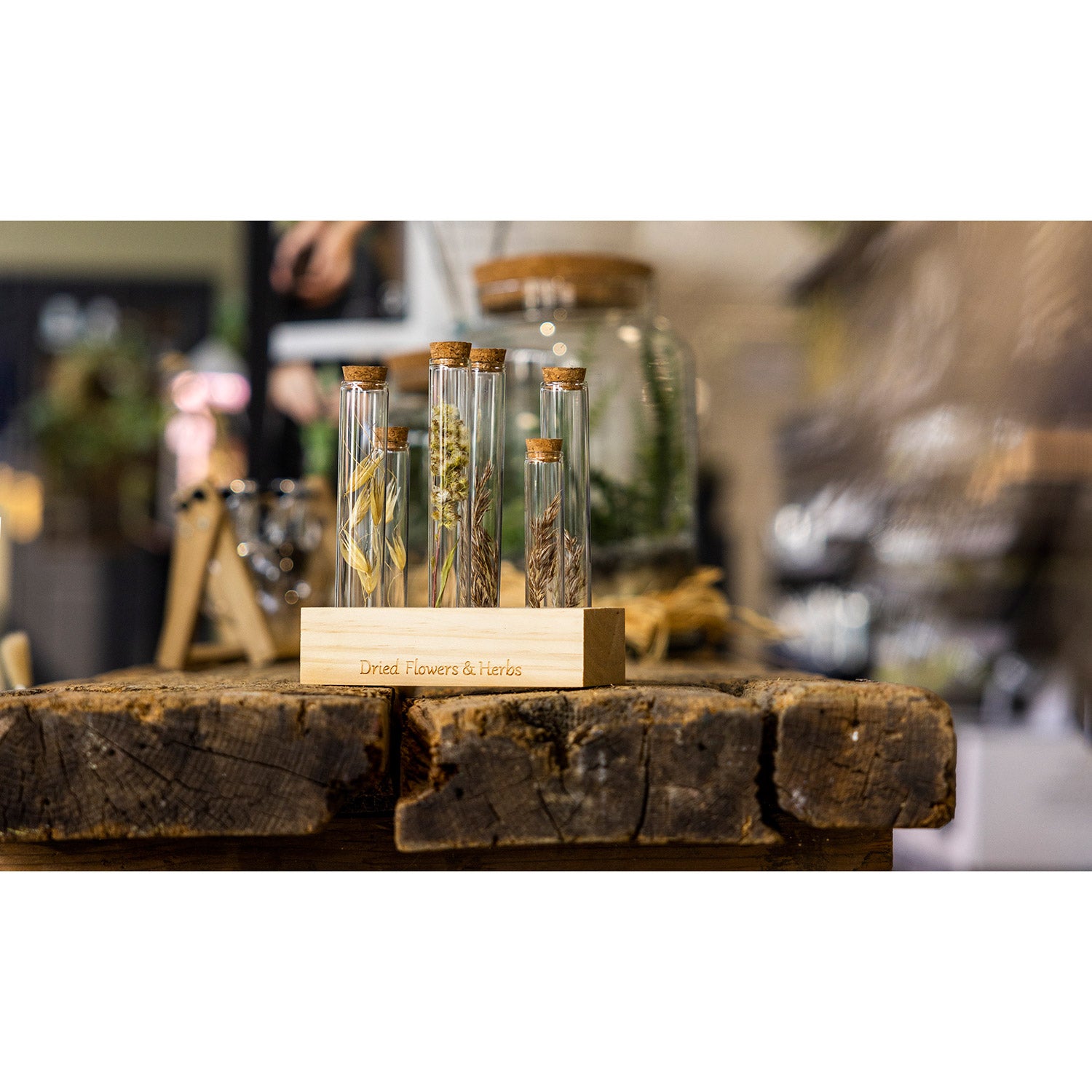 Dette reagensglas i størrelse L til tørrede blomster og urter er den perfekte dekoration. Sæt en tørret blomst i glasset, og tag naturen med ind i hjemmet. Reagensglasset er forsynet med en korkprop.