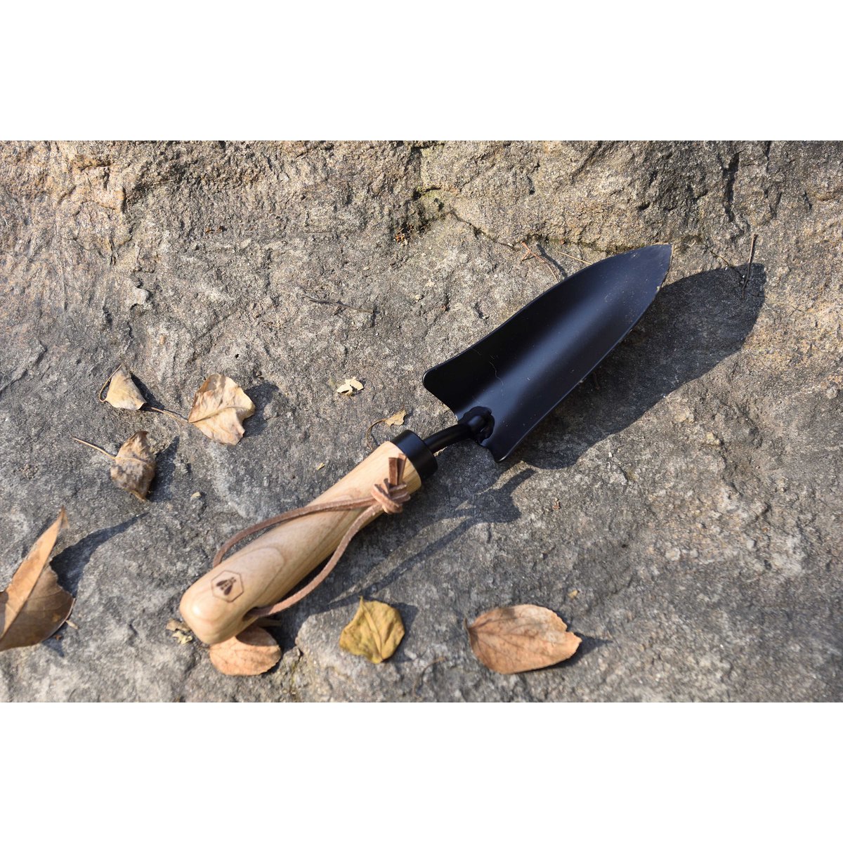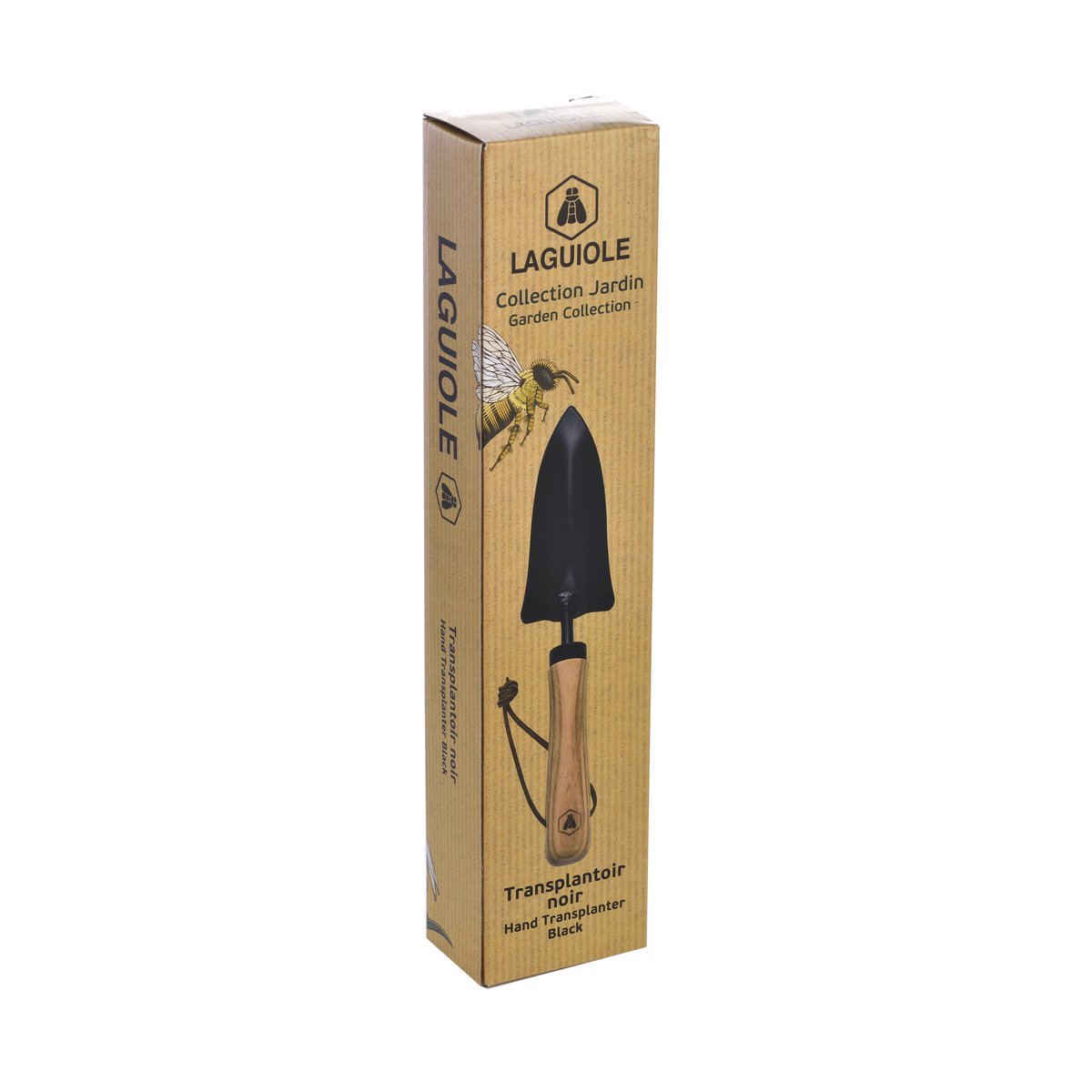Denne flotte prikleske fra Laguiole har et mat sort skovlblad i rustfrit stål og et håndtag i asketræ med læderstrop. Prikleskeer er lidt smallere og mere spidse end standard håndskovle og derfor perfekte til at tage stiklinger og omplante afgrøder.