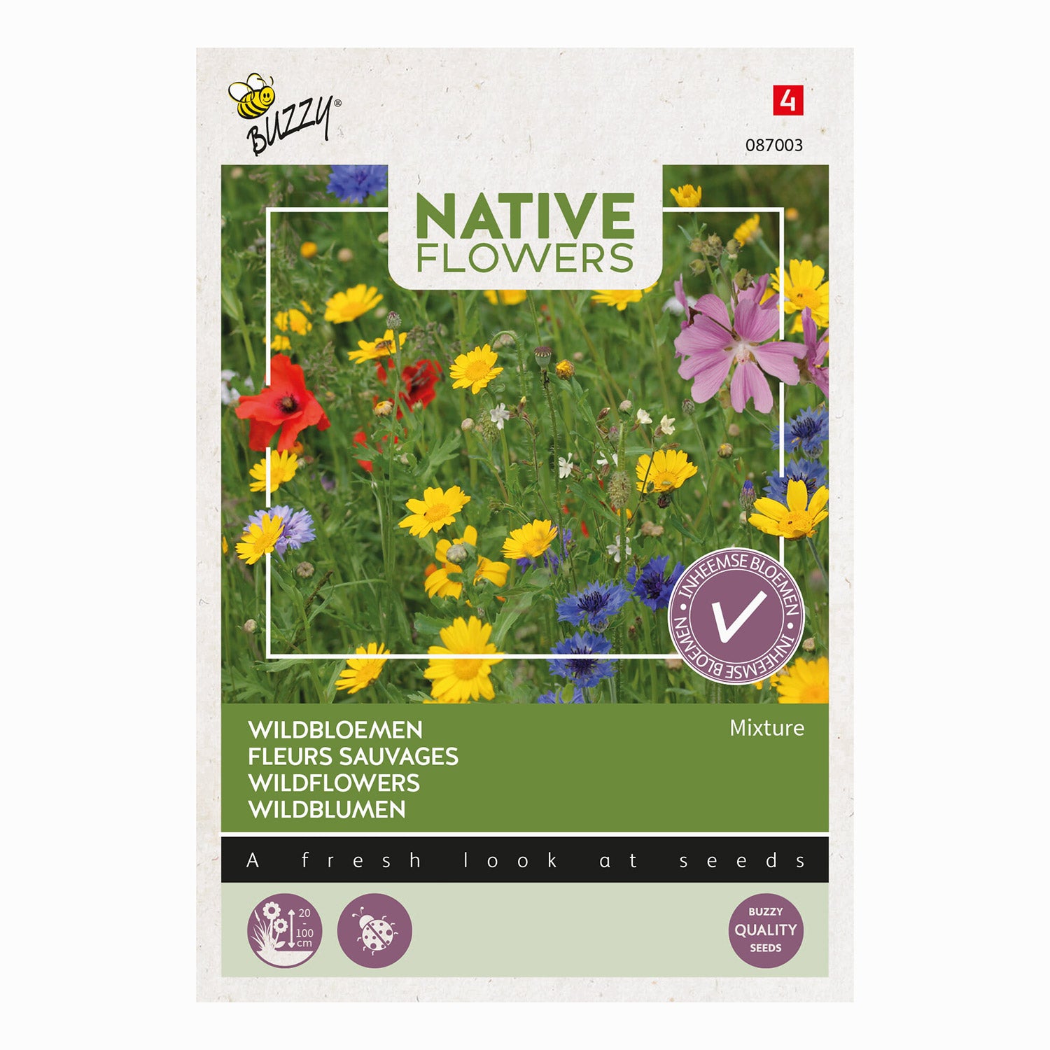 De vigtigste kendetegn ved den hjemmehørende vildblomstblanding varierer afhængigt af den konkrete sammensætning, men omfatter typisk en blanding af farverige blomster, græsser og urter, som traditionelt trives i det lokale økosystem. Ved at vælge hjemmehørende arter bidrager denne blanding til at bevare biodiversiteten, da planterne er tilpasset regionens jordbunds- og klimaforhold.