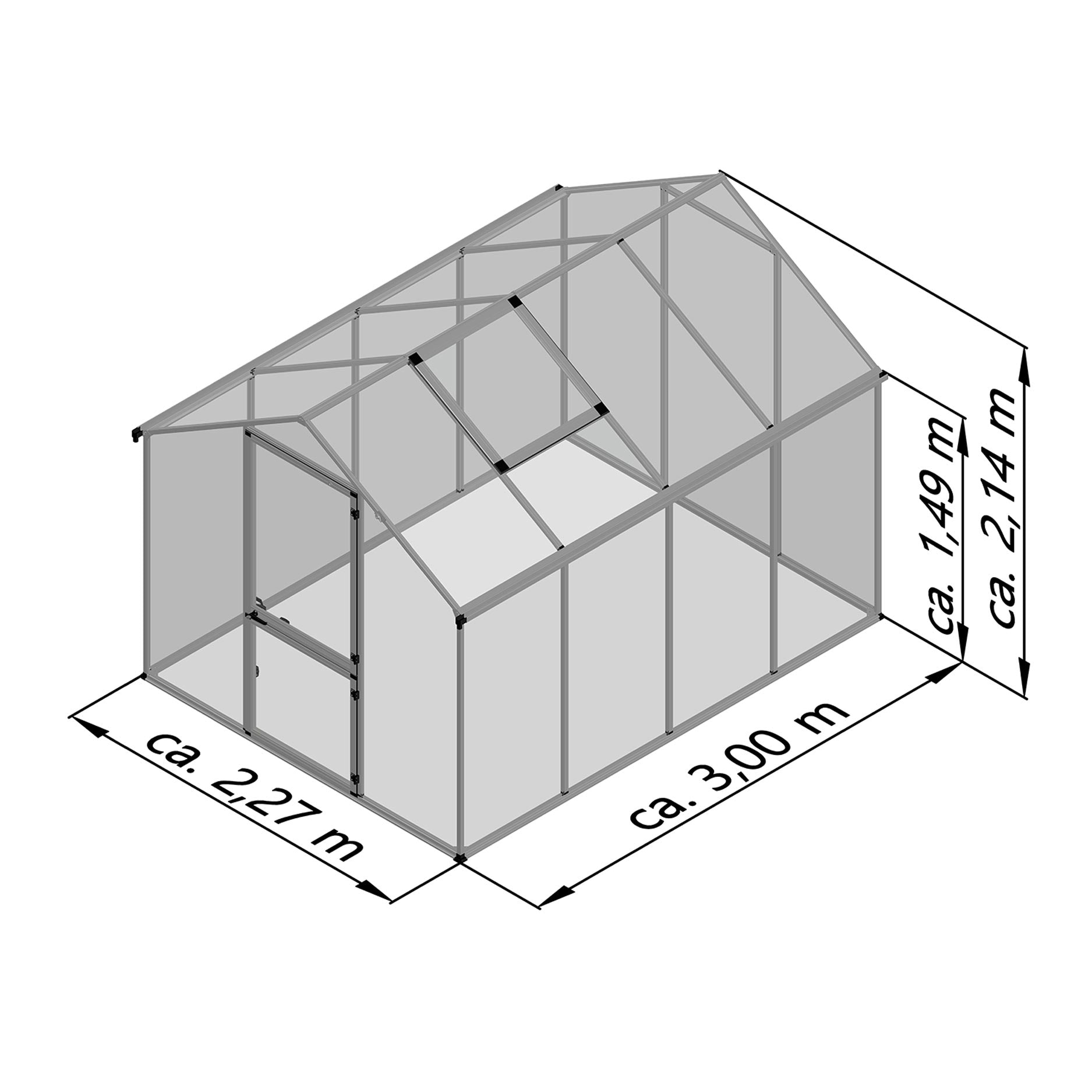 Mål: 300 x 227 x 214cm (l x b x h)