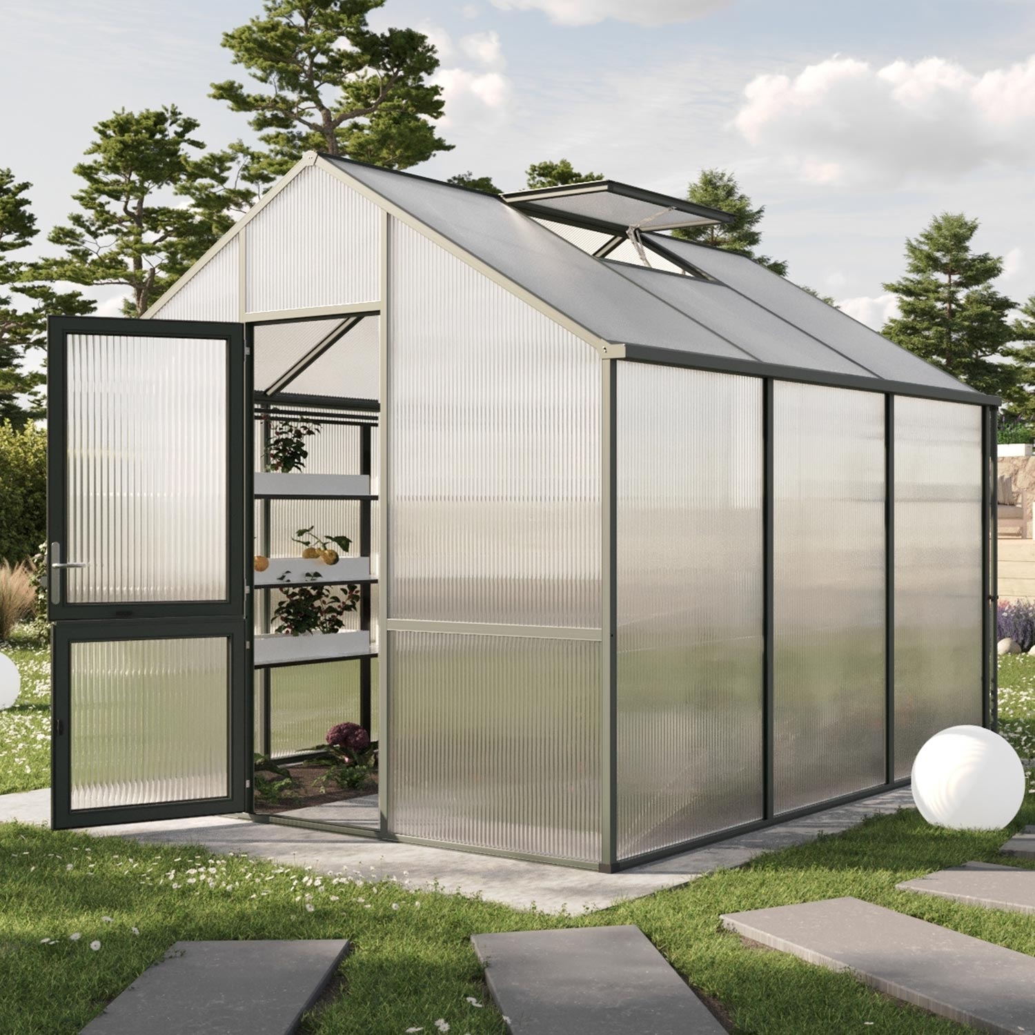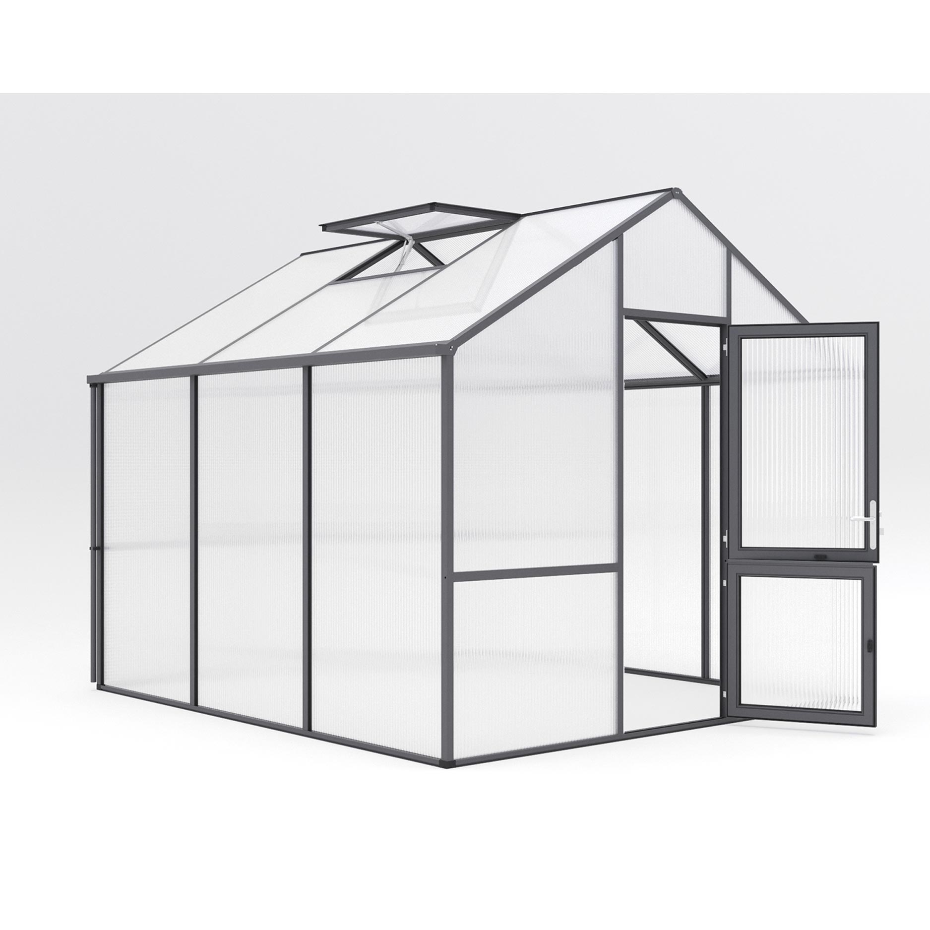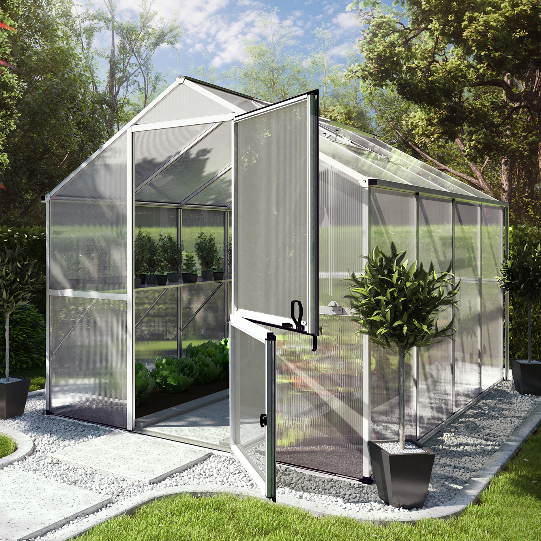 Konstruktionen er fremstillet af holdbart aluminium med 16mm kanalplader, som sikrer maksimal isolering og optimal lysfordeling. Pladerne er UV-beskyttede, så de forbliver klare, og planterne beskyttes mod for kraftig sol. Drivhuset er udstyret med en bred drejedør, et automatisk tagvindue, et manuelt bagvindue og dobbelte tagrender for effektiv afvanding. Med den valgfrie fundamentramme står drivhuset stabilt og i vater, også på mindre jævnt underlag.