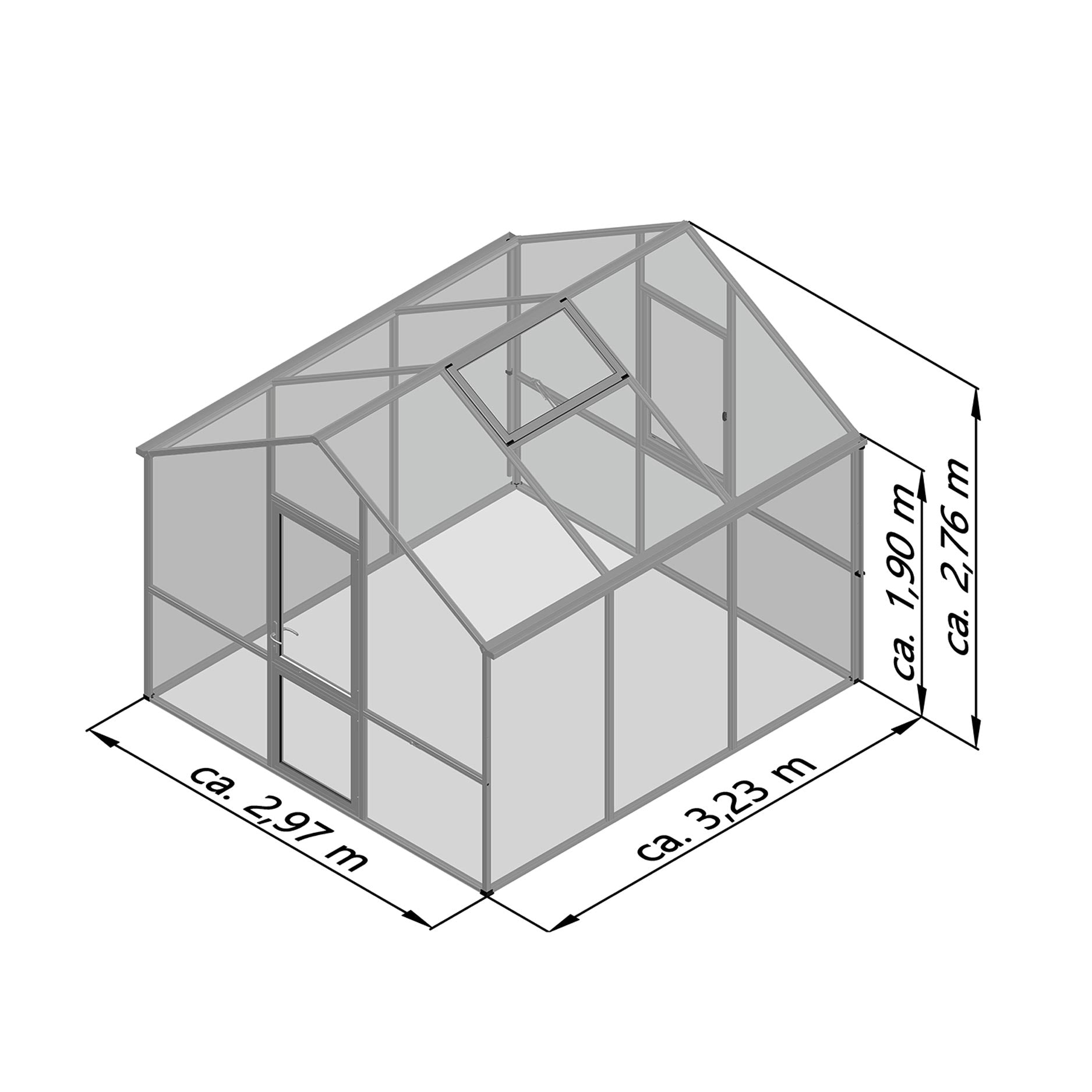 KGT Dahlie III er et rummeligt, teknisk avanceret drivhus til haveejeren, der søger maksimal lysindfald, isolering og stabilitet. Med godt 10m² gulvareal og rette sidevægge giver denne model en behagelig arbejdsplads, hvor også højere afgrøder kommer til deres ret. Den brede konstruktion og generøse kip-/tagrygshøjde sikrer fremragende luftcirkulation, hvilket gør drivhuset velegnet til intensiv dyrkning af grøntsager, krydderurter eller blomster året rundt.