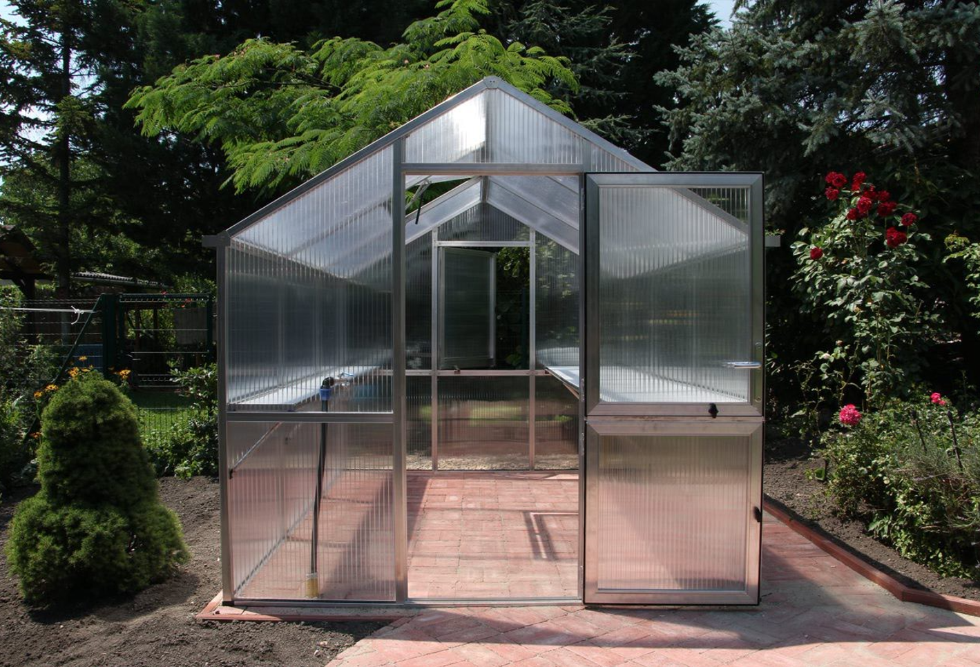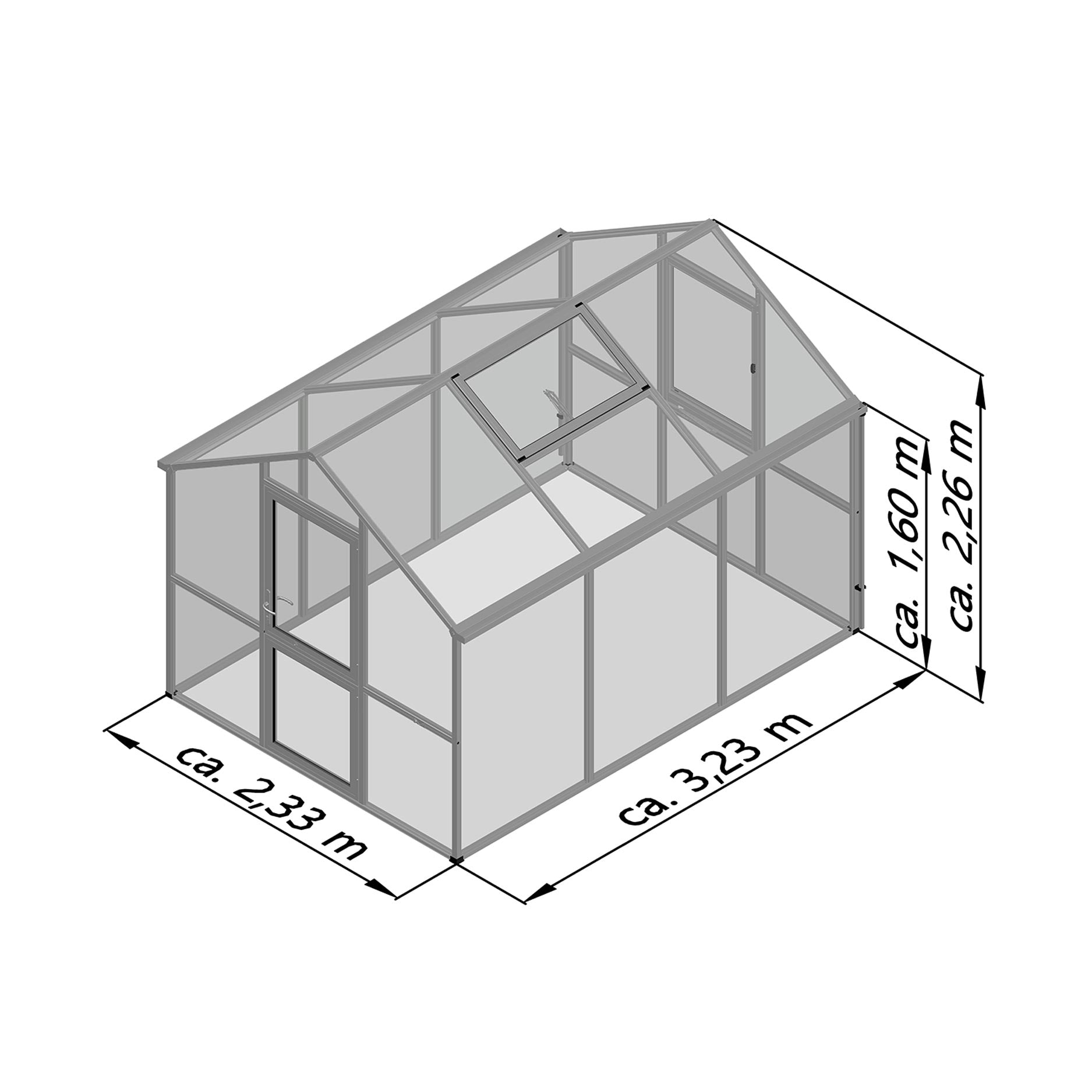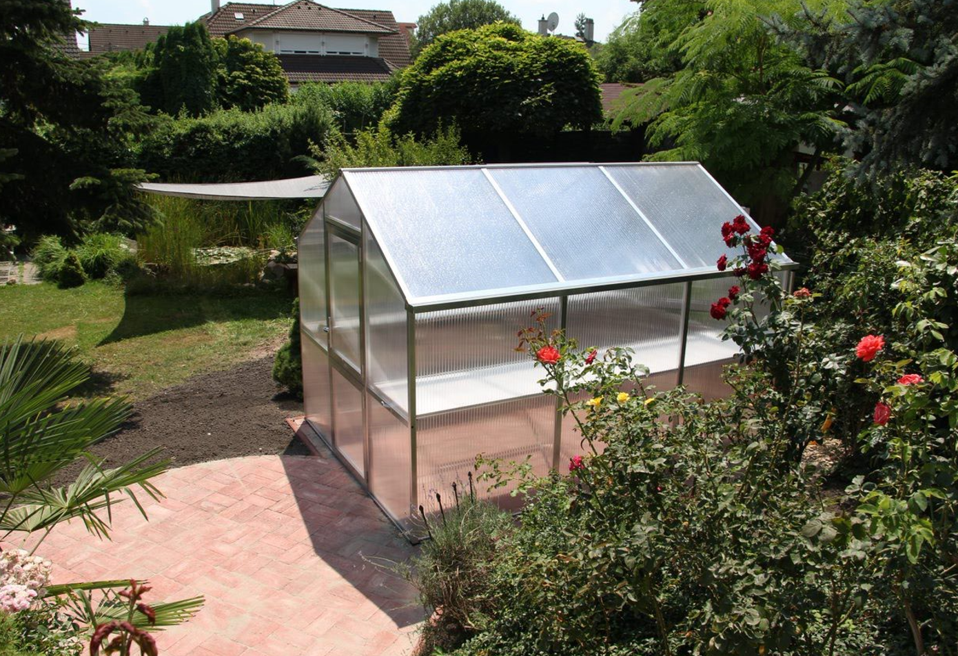 De 16 mm kanalplader giver enestående isolering og lysdiffusion, så temperaturforskelle og svidning forebygges. Aluminiumrammen er let, stærk og vedligeholdelsesarm, velegnet til mange års intensiv brug. Drivhuset er udstyret med en bred slagdør, et automatisk tagvindue, et manuelt bagvindue og dobbelte tagrender. Den valgfrie fundamentramme giver ekstra stabilitet, så Iris III også i hård vind forbliver pålidelig.