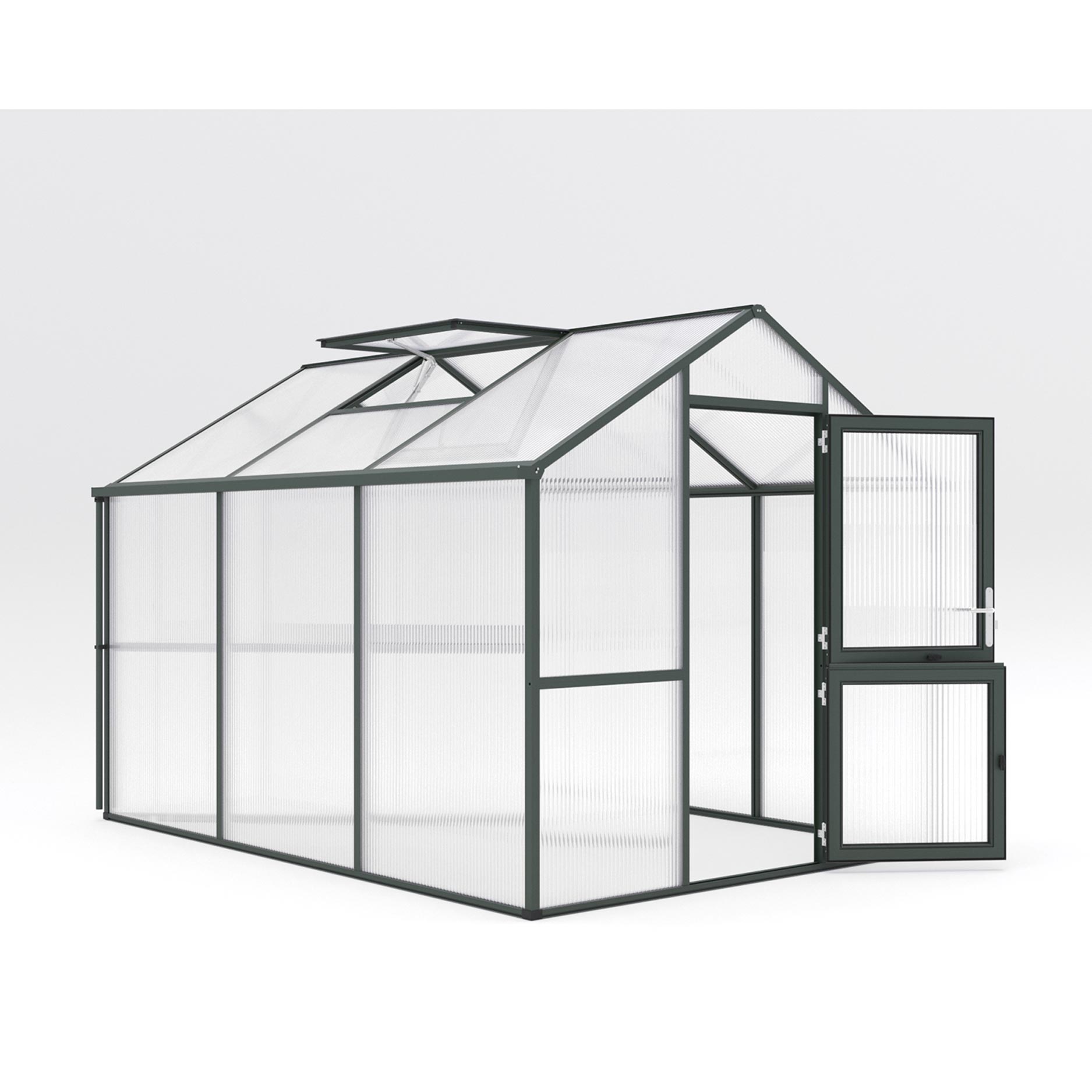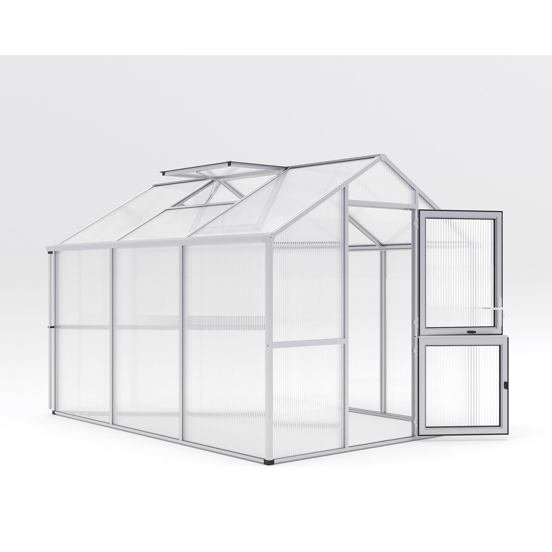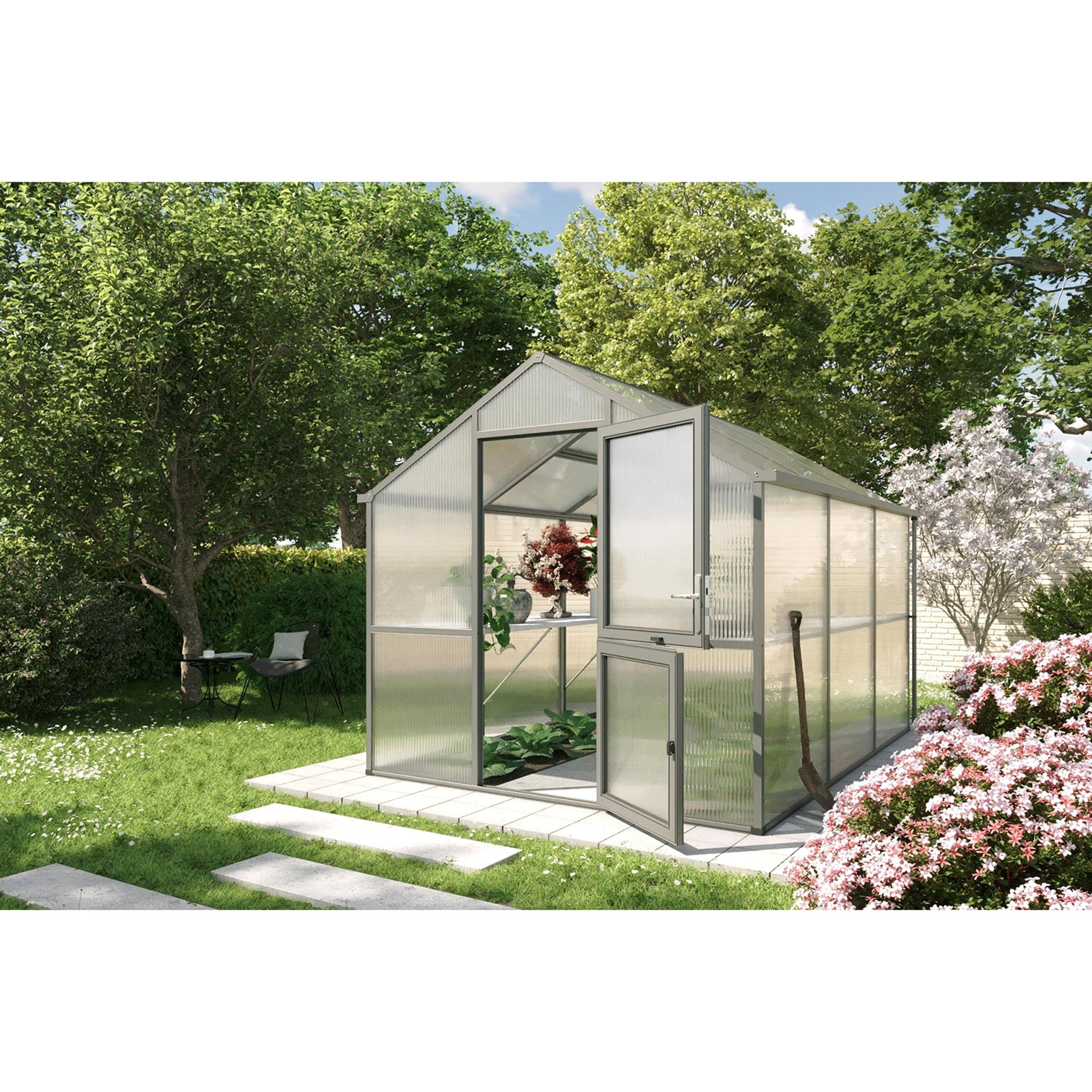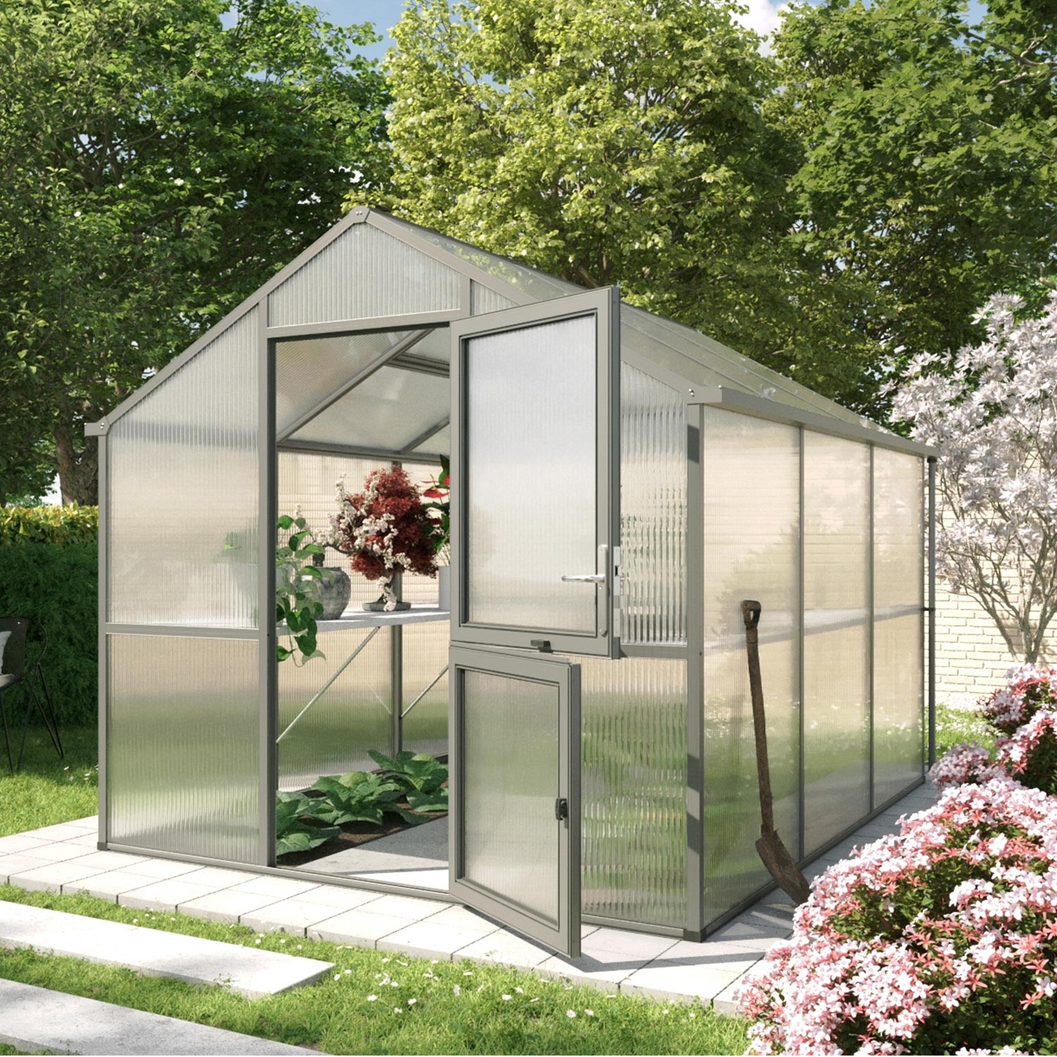 De 16 mm kanalplader giver enestående isolering og lysdiffusion, så temperaturforskelle og svidning forebygges. Aluminiumrammen er let, stærk og vedligeholdelsesarm, velegnet til mange års intensiv brug. Drivhuset er udstyret med en bred slagdør, et automatisk tagvindue, et manuelt bagvindue og dobbelte tagrender. Den valgfrie fundamentramme giver ekstra stabilitet, så Iris III også i hård vind forbliver pålidelig.