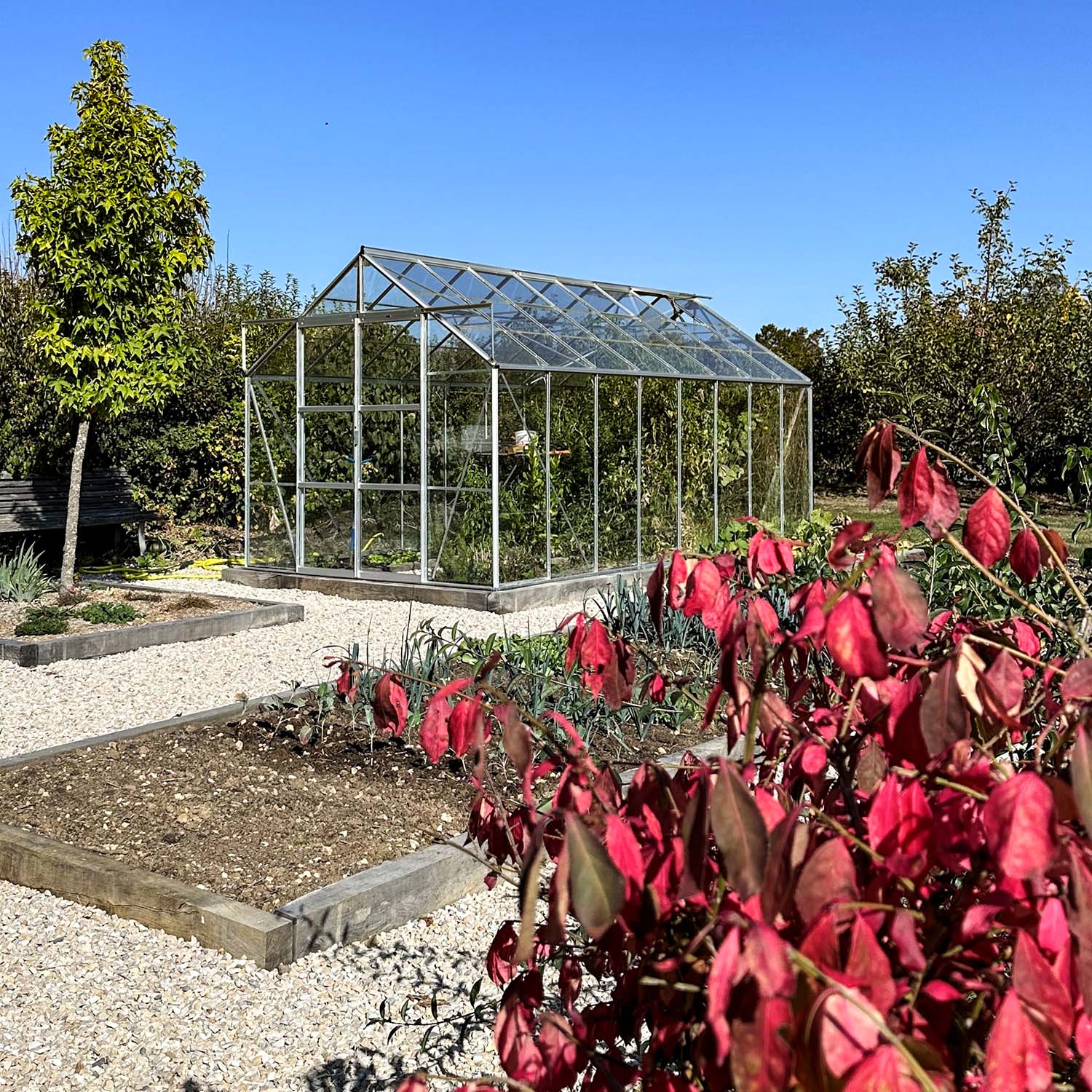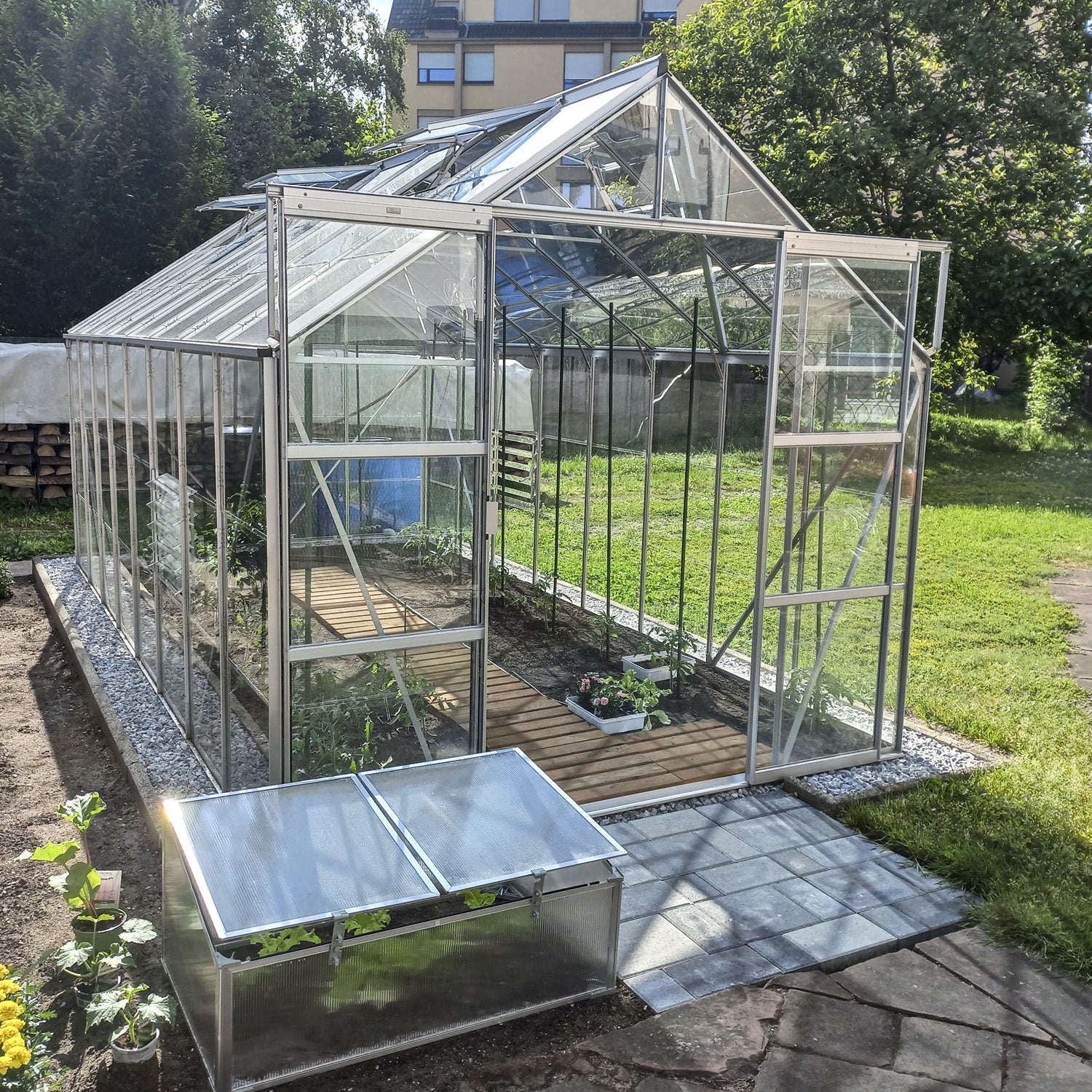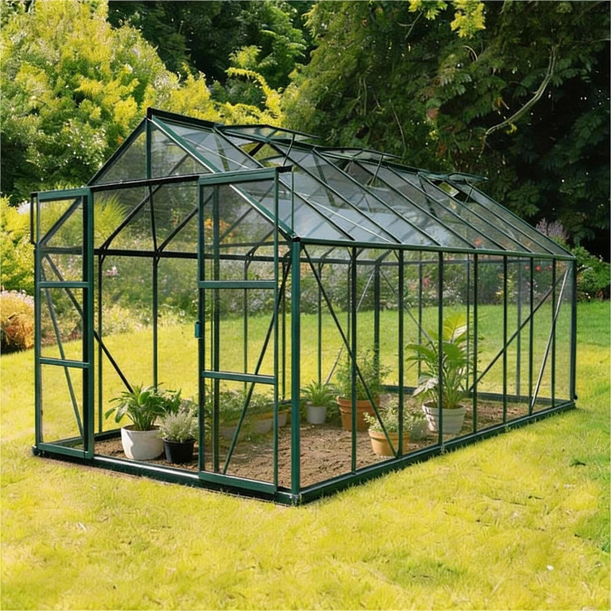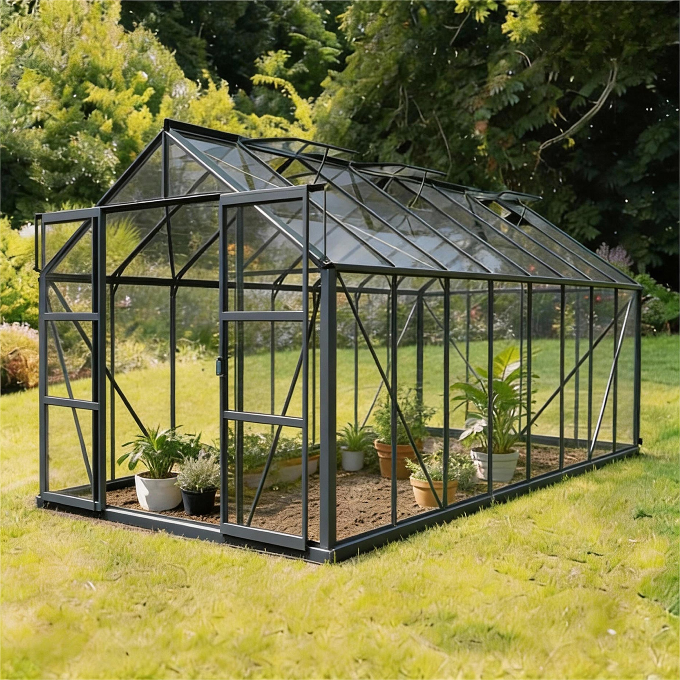 Laurus 12,90 m² er et rummeligt drivhus med et lyst, åbent udtryk. Der er god plads til forskellige afgrøder, men også til et komfortabelt arbejdsområde eller en lille siddeplads. Kombinationen af højde, lys og ventilation gør det til et drivhus, hvor både planter og mennesker trives lige godt.