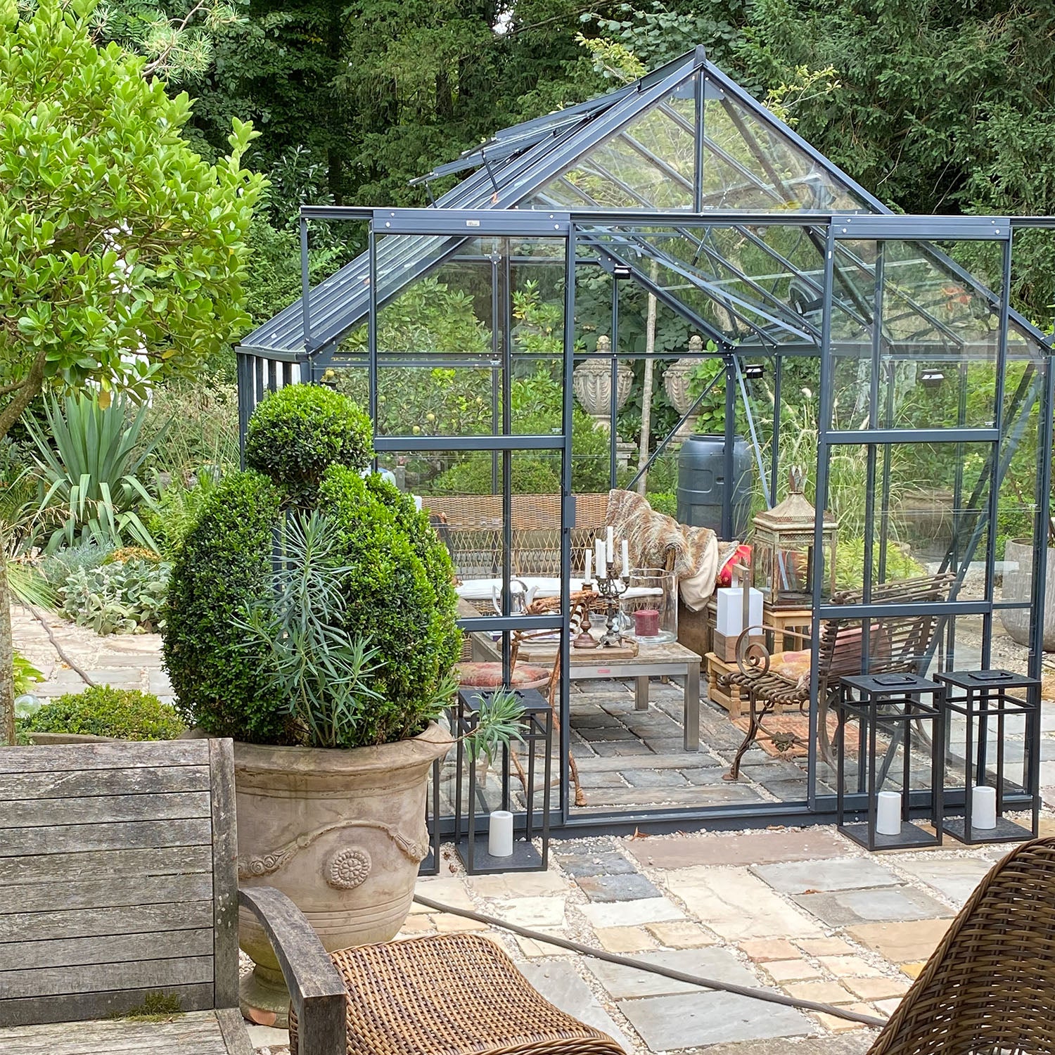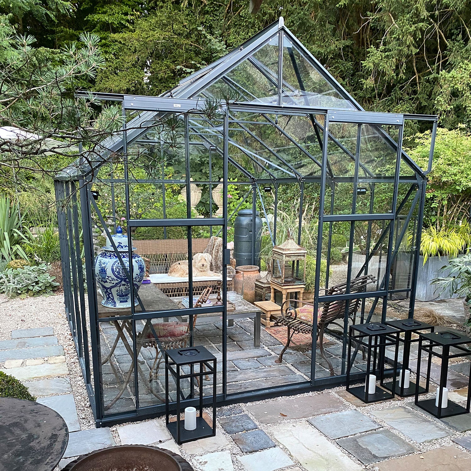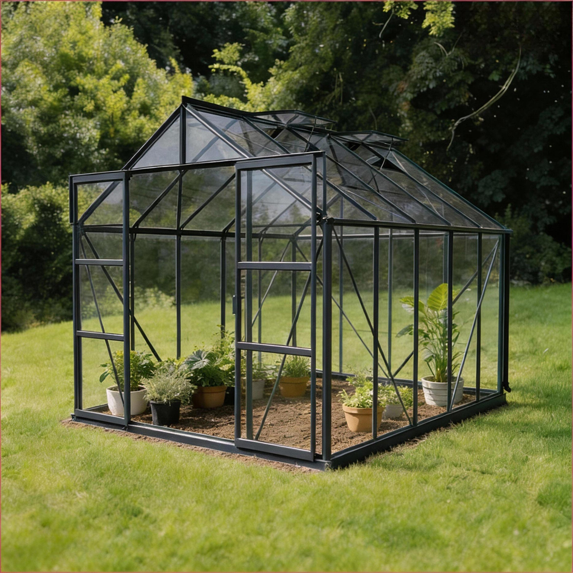 🟩 Rummeligt drivhus med dobbeltdør og fire tagvinduer