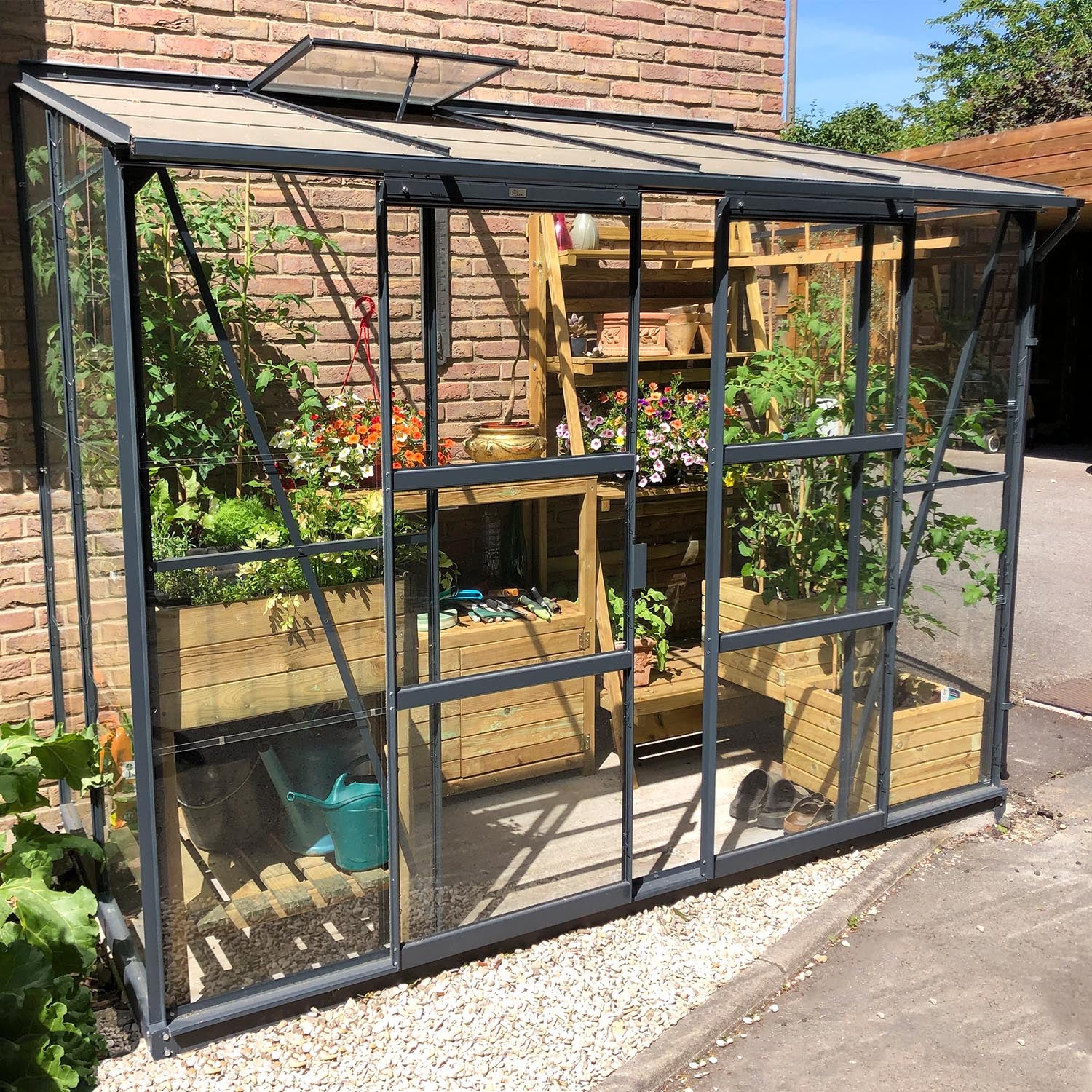 Melissa 3,30 m² er et alsidigt vægdrivhus til Dem, der gerne vil dyrke flere afgrøder side om side. Størrelsen giver god plads til en fuldt gennemarbejdet dyrkningsplan, men er stadig kompakt nok til at kunne placeres i en mindre have eller op ad en skurvæg. Ideelt til krydderurter, unge grøntsagsplanter og til overvintring af sarte sorter.