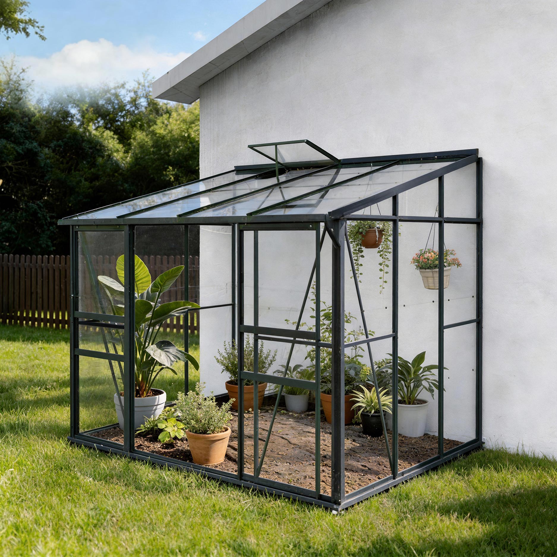 ⚠️Dette vægdrivhus skal monteres i sin fulde længde op ad en stenvæg (ikke et hegn)