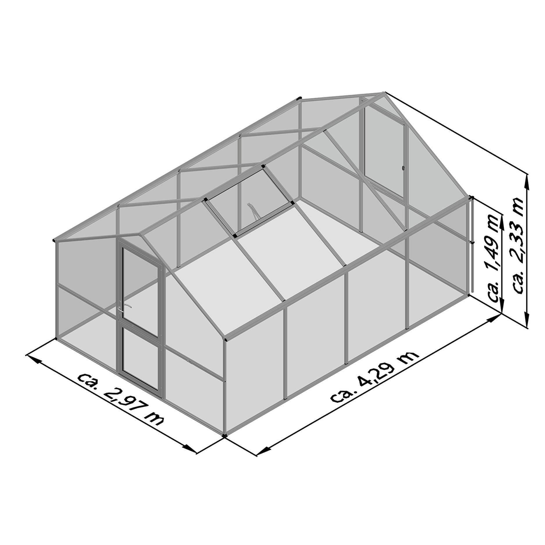 Mål: 429 x 297 x 233cm (l x b x h)
