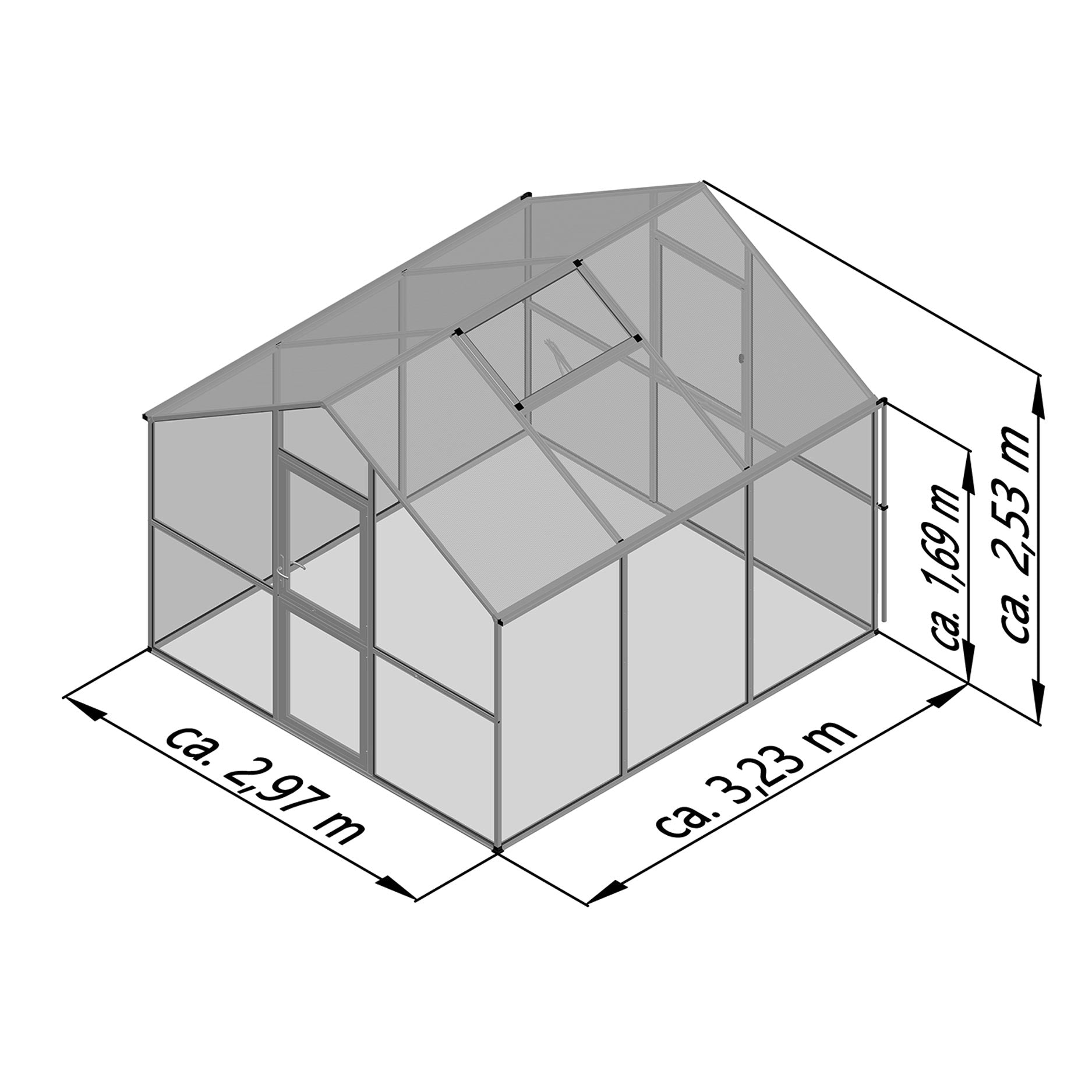 Mål: 323 x 297 x 253cm (l x b x h)