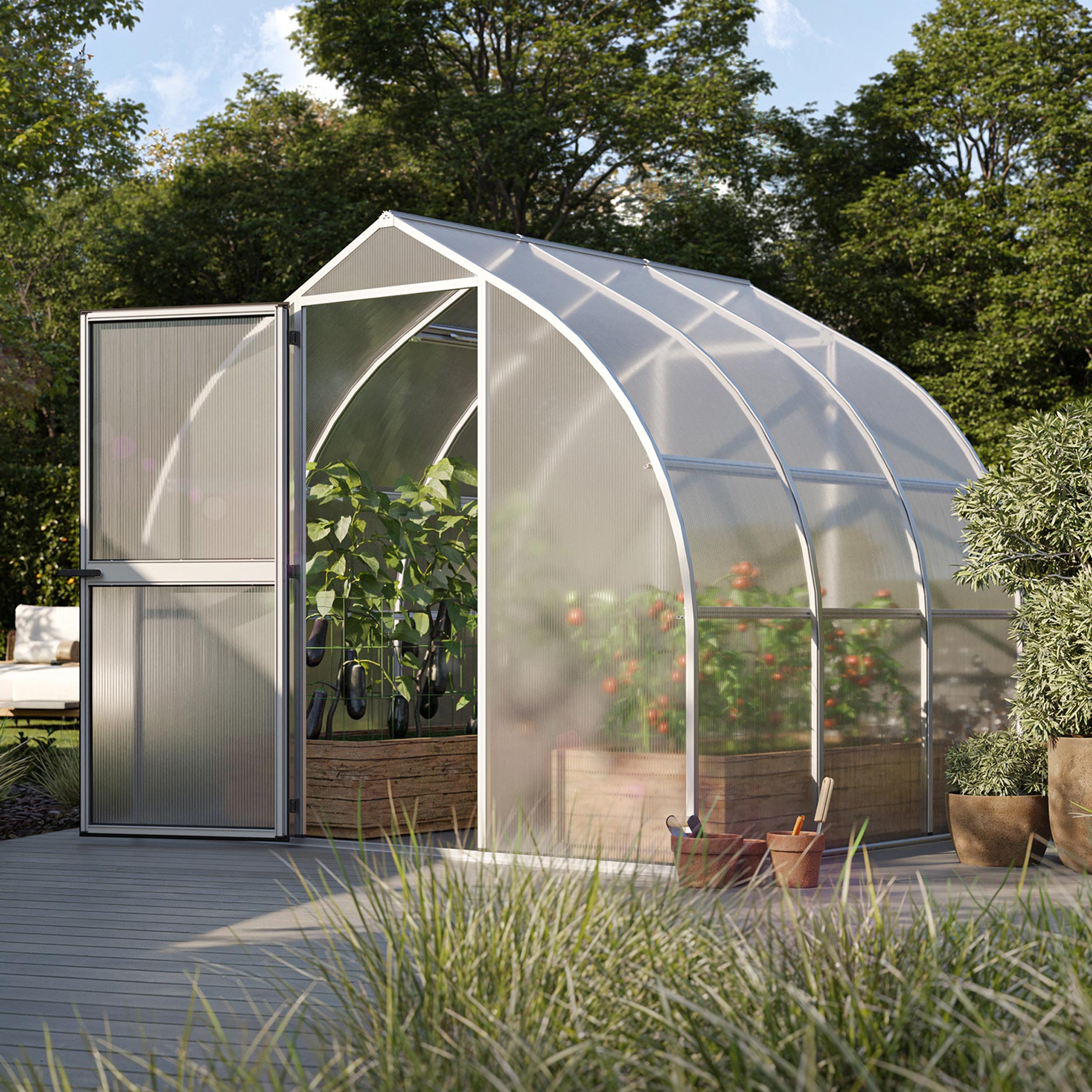 Rhodo III er beregnet til haveejeren, der vil starte kompakt uden at gå på kompromis med kvalitet eller resultat. Med sin runde buede form og effektive indretning er denne model ideel til mindre haver eller dyrkningspladser, hvor den tilgængelige plads skal udnyttes optimalt. Formen fremmer en naturlig luftcirkulation og lysfordeling, så planterne vokser mere jævnt og mindre hurtigt får svidninger. Takket være den høje stabilitet og isoleringsevne er Rhodo III ikke kun velegnet til foråret og sommeren, men også til at forlænge dyrkningssæsonen helt ind i efteråret.