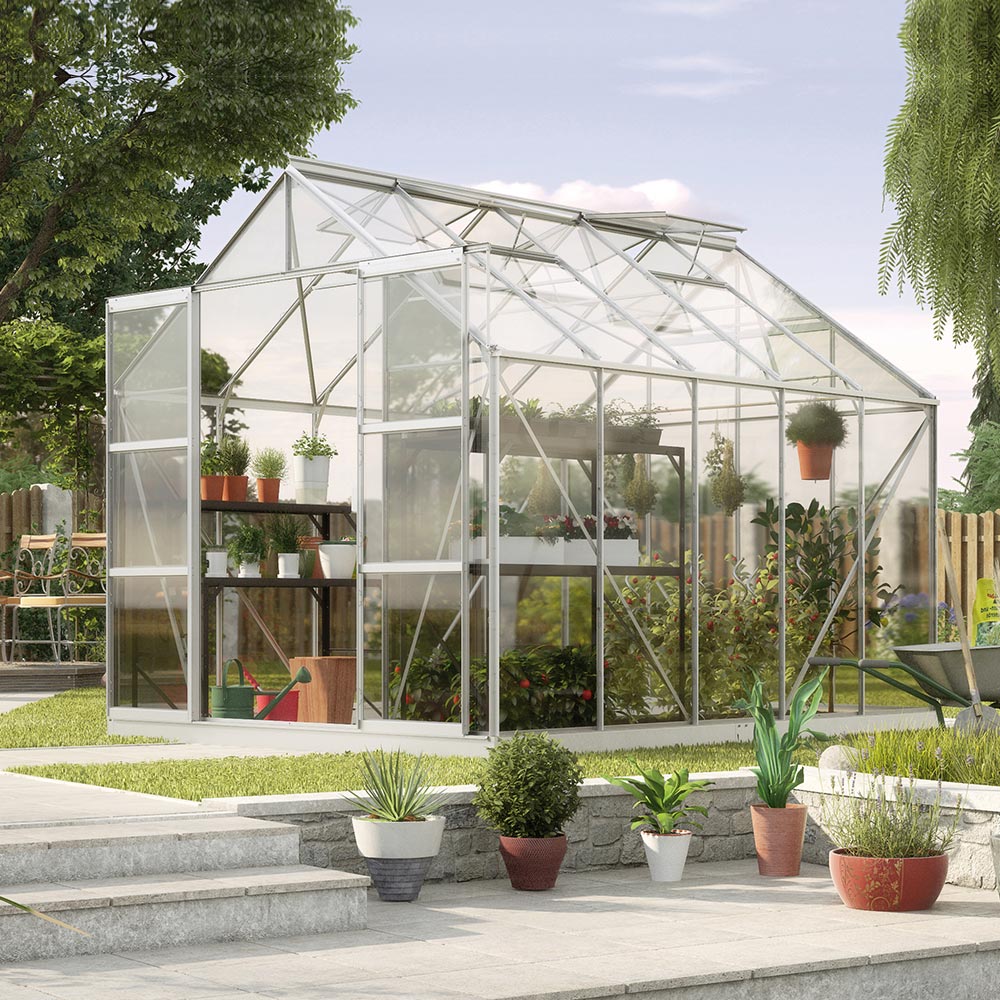 Vitavia Uranus 8300 er et rummeligt hobbydrivhus, hvor De med glæde kan arbejde hele året. Med 8,3m² gulvareal og en høj kip får De et lyst rum, hvor potteborde, plantekasser eller endda en komfortabel arbejdsbænk nemt kan få plads. De store vinduer lukker masser af dagslys ind og giver drivhuset et åbent præg, så dyrkning ikke bliver en opgave, men en fornøjelse.