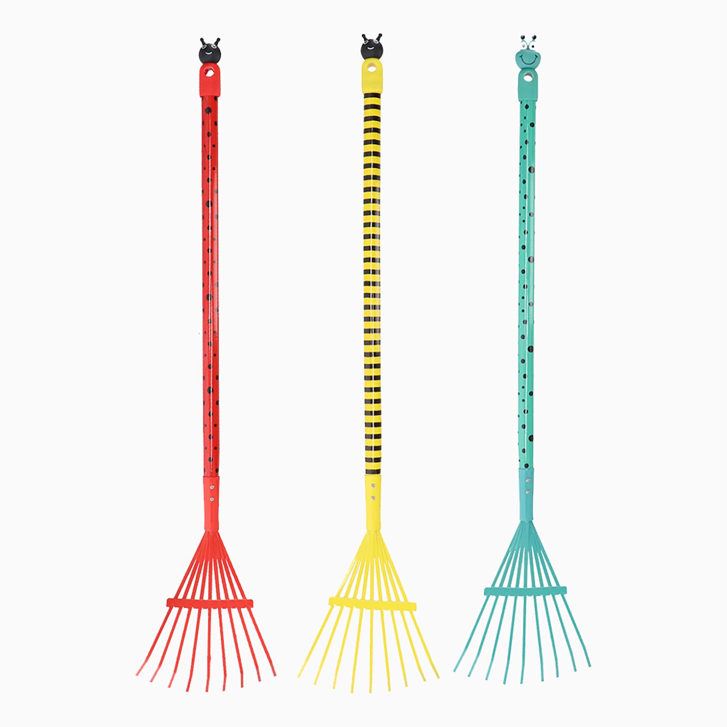 Fås med tre glade insekter, så hvert barn kan vælge sin favorit. Ideel til haven, køkkenhaven eller til at rydde blade på terrassen.