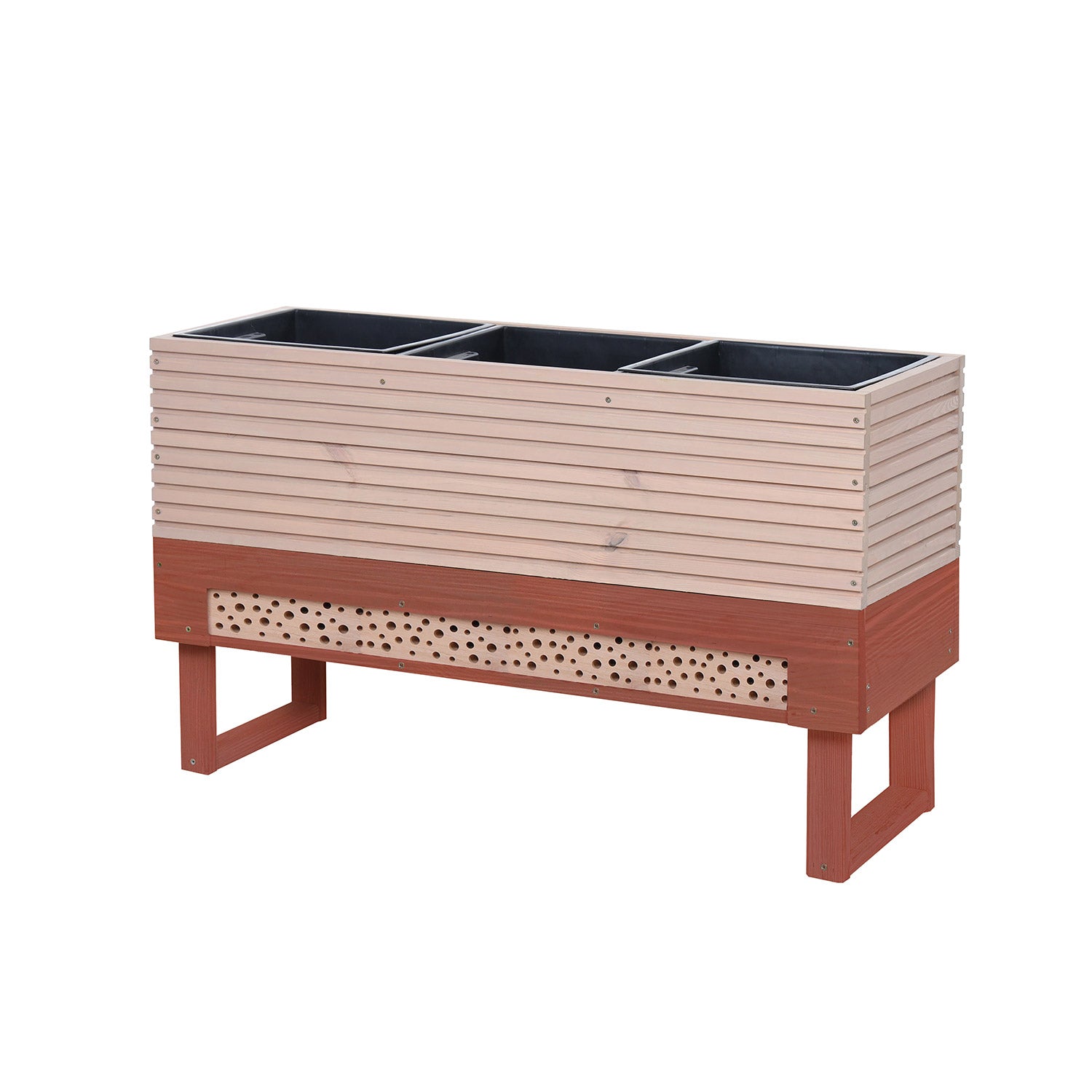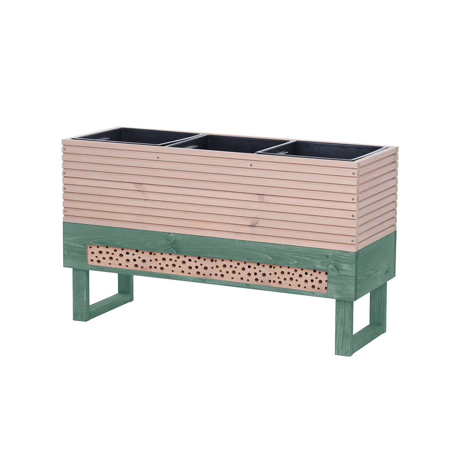 Bestøv og beskyt planterne i denne køkkenhavekasse med besøgende i det indbyggede insekthotel. Et flot, solidt dyrkningsbord, et meget nyttigt insekthotel – og det hele i en fin farve. Med dyrkningsbordene fra Natura Eterna skaber du din egen trendy køkkenhave.
