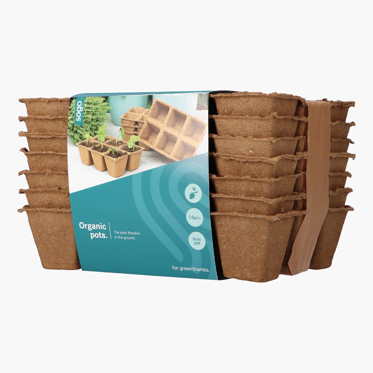 Sogo-tørvepotter er ideelle til såning. De nedbrydelige potter er fremstillet af træmasse og tørv, materialer der er omhyggeligt forarbejdet til en fast, men luftig helhed. Det giver en fremragende gennemtrængelighed, så rødderne nemt kan vokse og udvikle sig stærkt. Potterne er pakket i strimler med 6 x 6 rum, hvilket gør det nemt at dyrke flere småplanter på én gang.