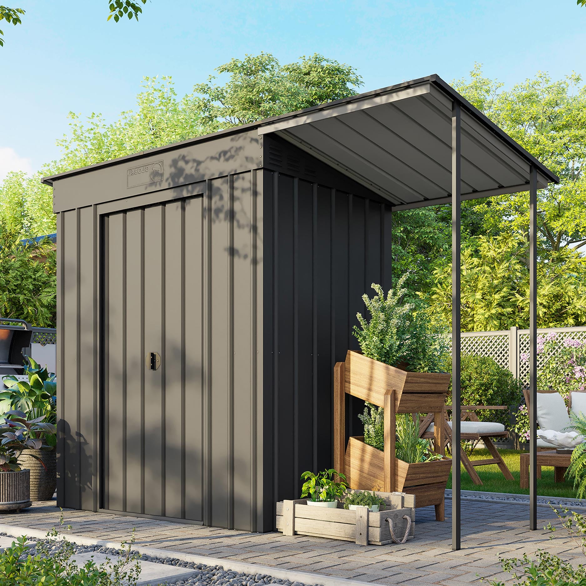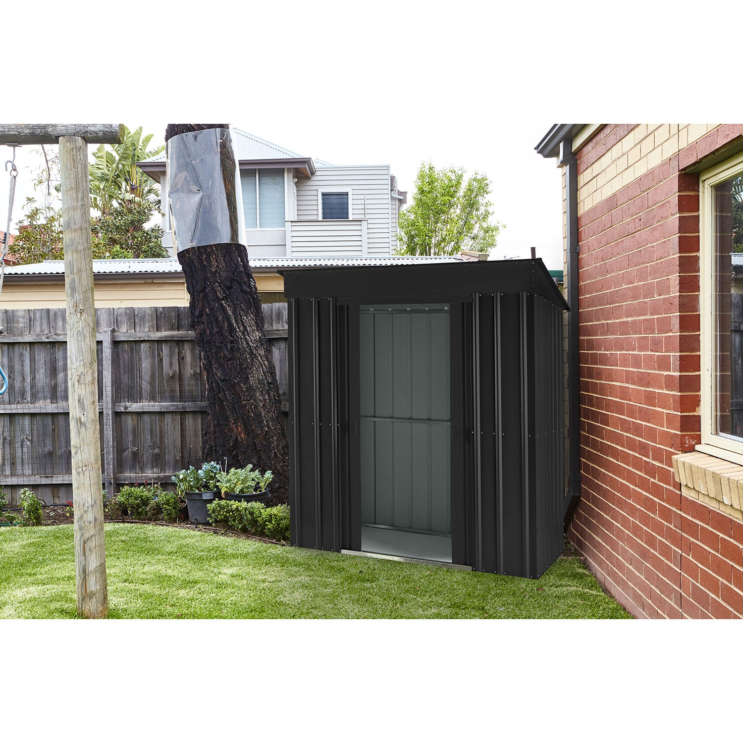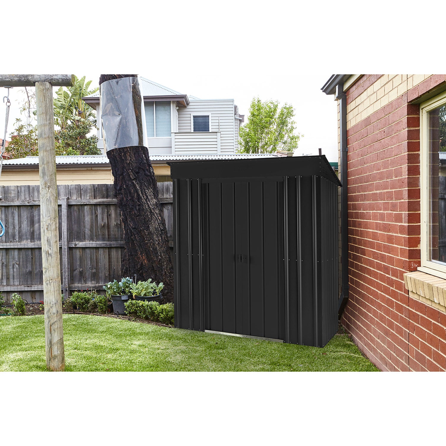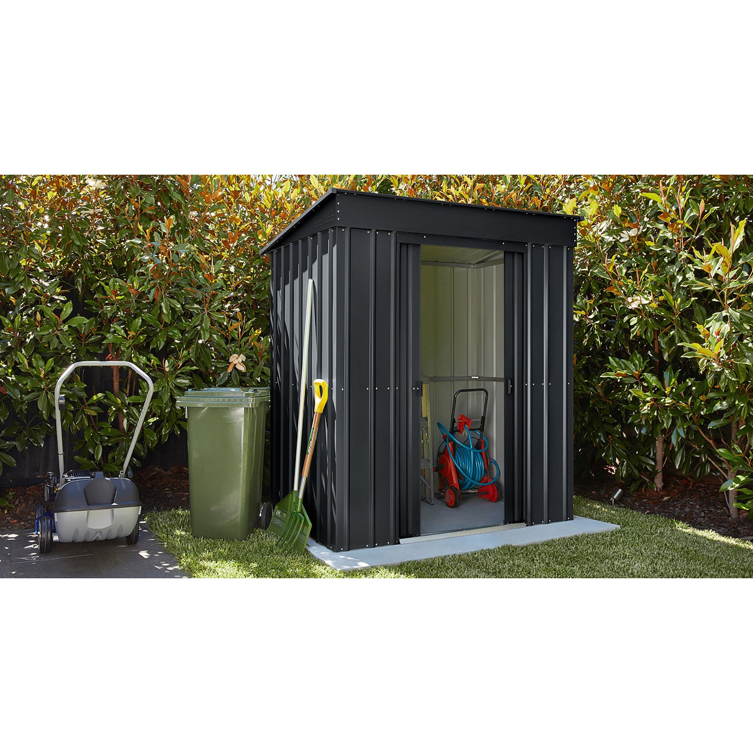 De Skillion 64 er et kompakt skur med et moderne udtryk. Dette skur er perfekt til placering, i bredden, op ad en lang mur. Med et areal på 1,93m² kan du nemt få plads til en cykel, reolhylder eller en arbejdsbænk. Dette flotte metalskur fås i 2 farver. Alle udvendige dele er emaljerede og termisk galvaniserede. Denne behandling giver ikke kun fremragende beskyttelse mod vejrpåvirkninger, den er også meget ridse- og slagfast. Skillion har en dobbeltskyde dør med en samlet bredde på 64cm. Og vil du hellere opbevare noget udendørs? Med udvidelsesmodulet kan du montere et ekstra tag på Skillion-skuret, så du kan skabe en pæn overdækning.