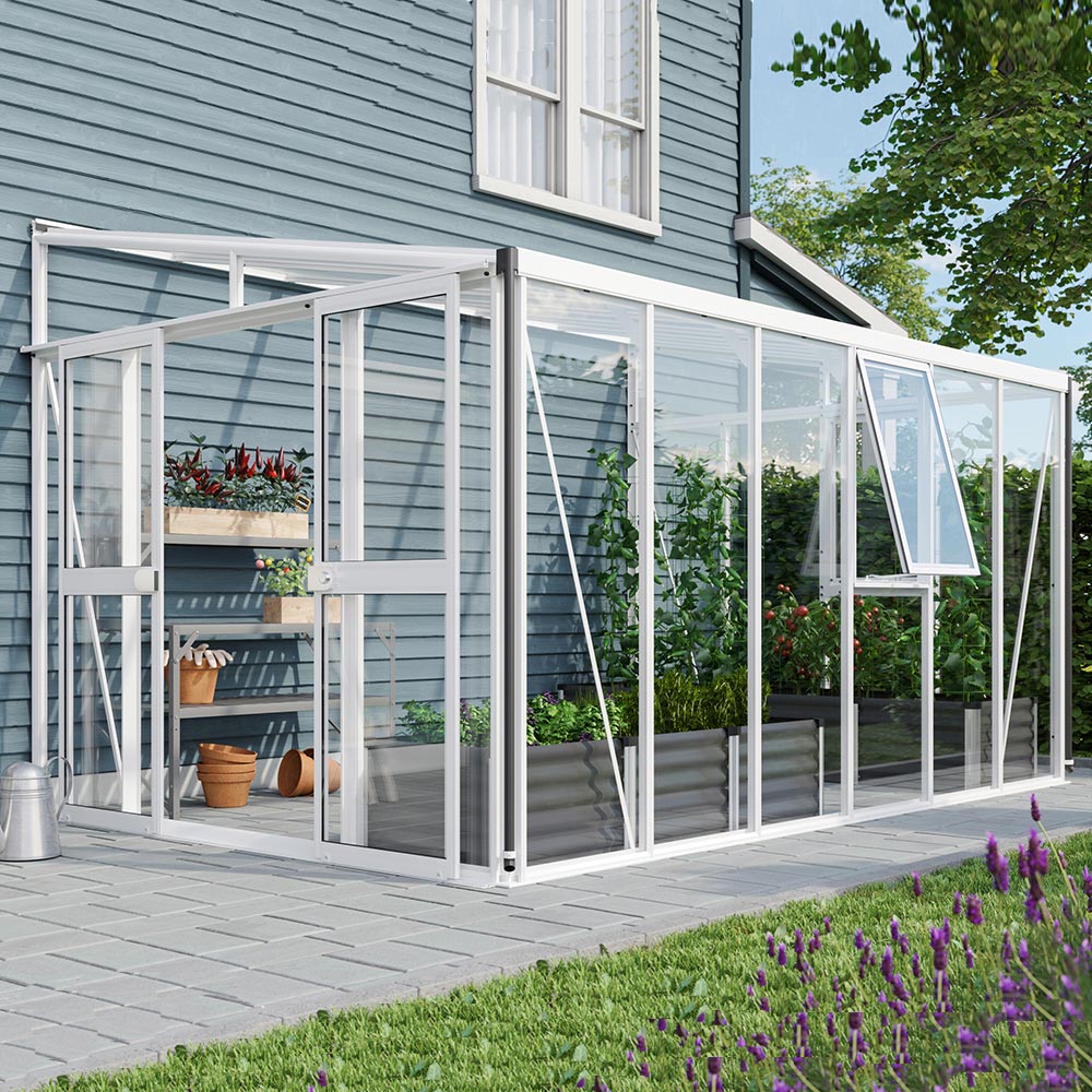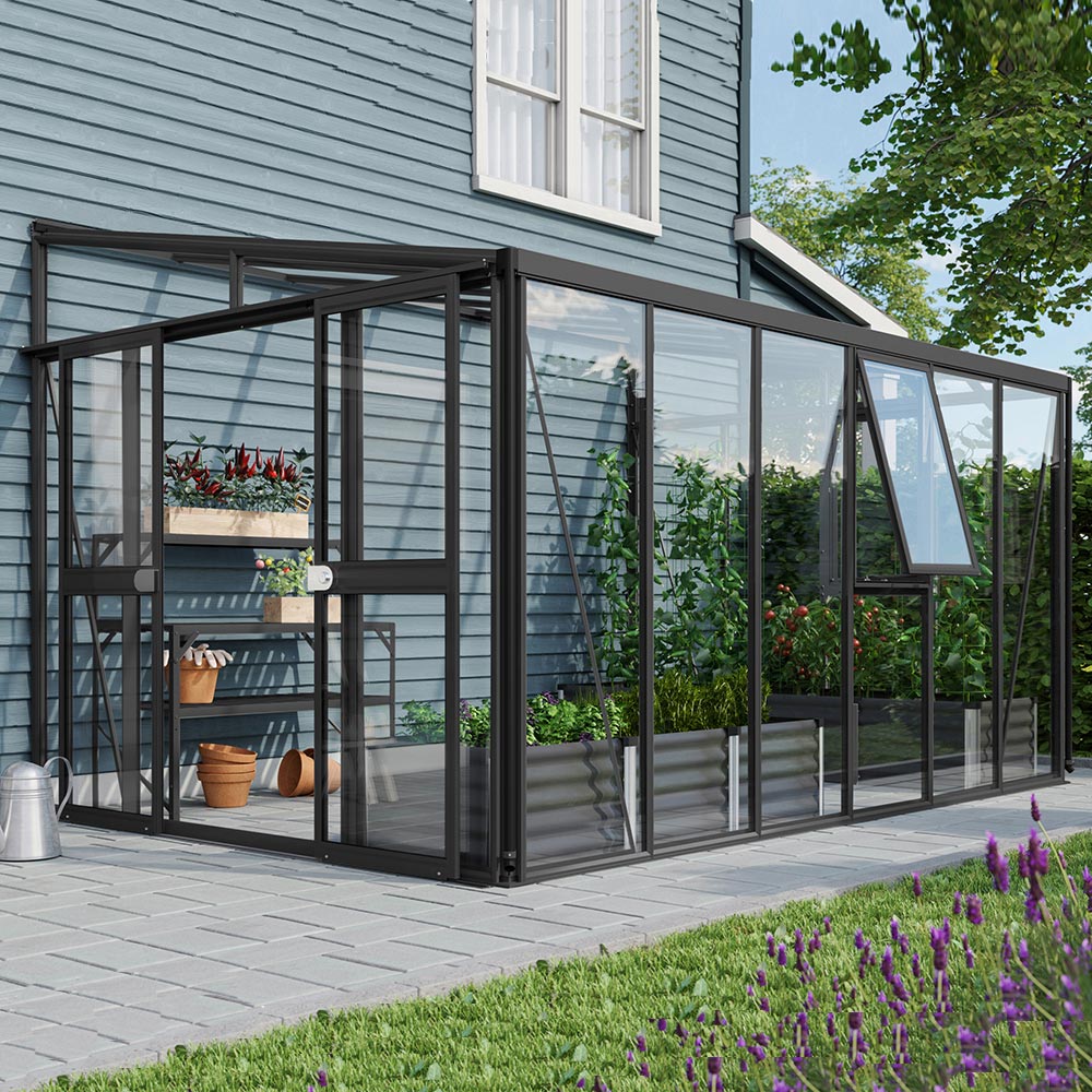 Vitavia Athena 10200 er ideel til Dem, der vil dyrke effektivt i en kompakt have uden at gå på kompromis med udseende eller kvalitet. Dette vægdrivhus udnytter en facade på en smart måde, så varmen holdes bedre, og planterne får glæde af et stabilt mikroklima. Perfekt til krydderurter, småplanter eller overvintring af middelhavsarter. Med 10,2m² gulvareal og en kipshøjde på 2,39m kombinerer Athena praktisk arbejdsplads med et elegant, let udtryk.