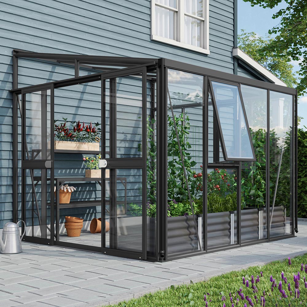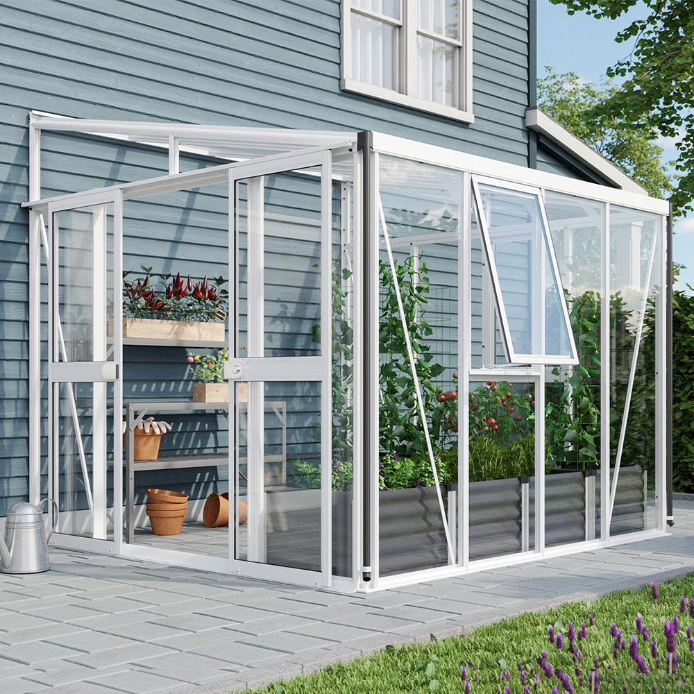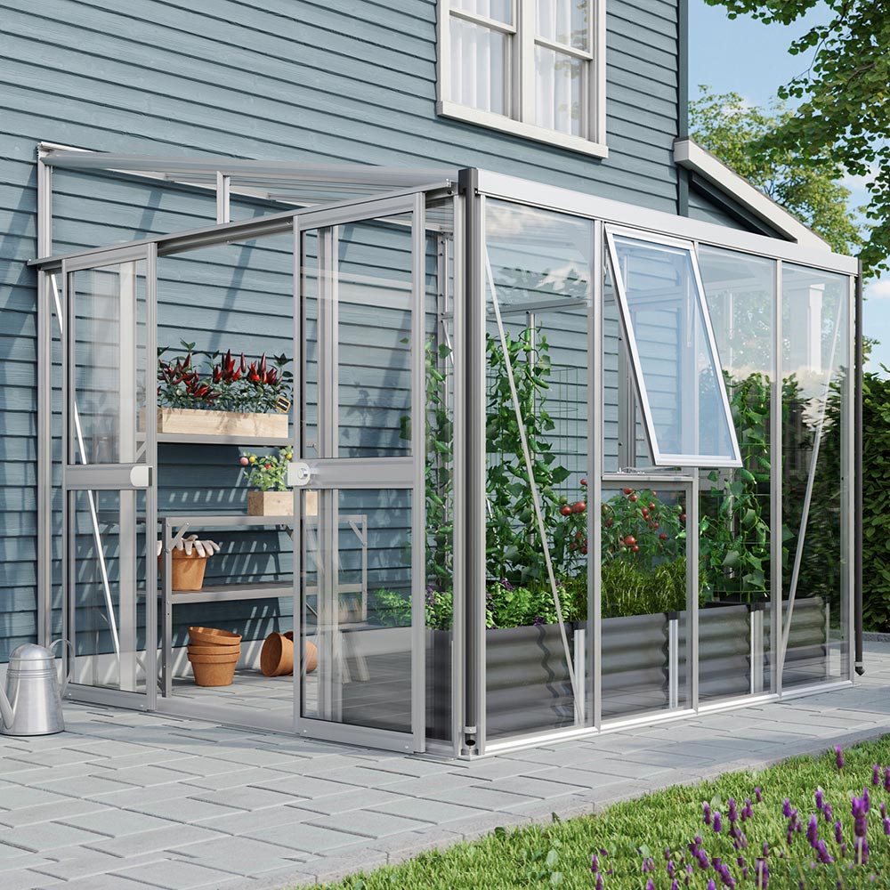 Vitavia Athena 7000 er det perfekte vægdrivhus til haveejeren, der vil dyrke effektivt på en stilfuld måde. Det passer i en kompakt have, hvor en facade kan udnyttes til at holde på varmen og skabe læ. Ideelt til Dem, der vil dyrke krydderurter, agurker eller krukkeplanter i et lyst, godt ventileret rum, som forlænger vækstsæsonen betydeligt. Med 7m² gulvareal og en kipshøjde på 2,39m giver Athena et praktisk og overskueligt dyrkningssted, der passer flot til hus eller terrasse.