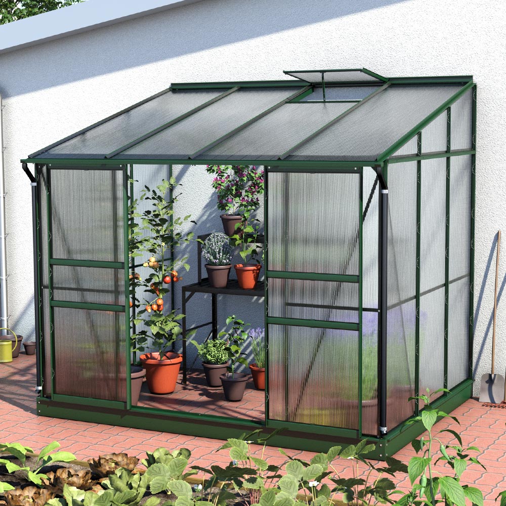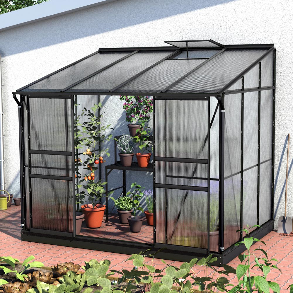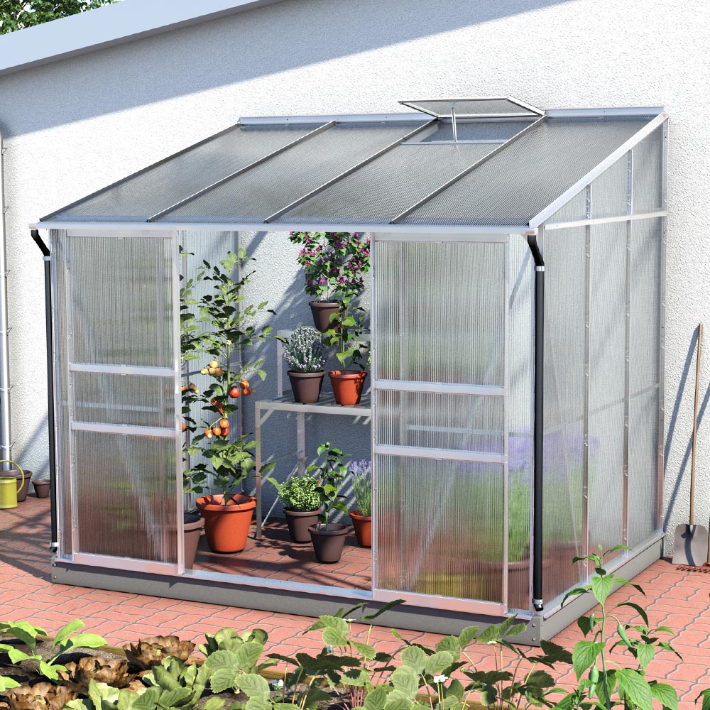 Vitavia Ida 5200 er beregnet til gartneren, der vil dyrke med klasse og effektivitet op ad en facade. Takket være et gulvareal på 5,2m² og en kipshøjde på 2,22m får De et tilgængeligt dyrkningsrum, hvor både tomater, krydderurter og overvintring af potteplanter er fuldt muligt. Med de frontmonterede dobbelte skydedøre giver designet en bred adgang, samtidig med at drivhuset æstetisk passer til husets mur.