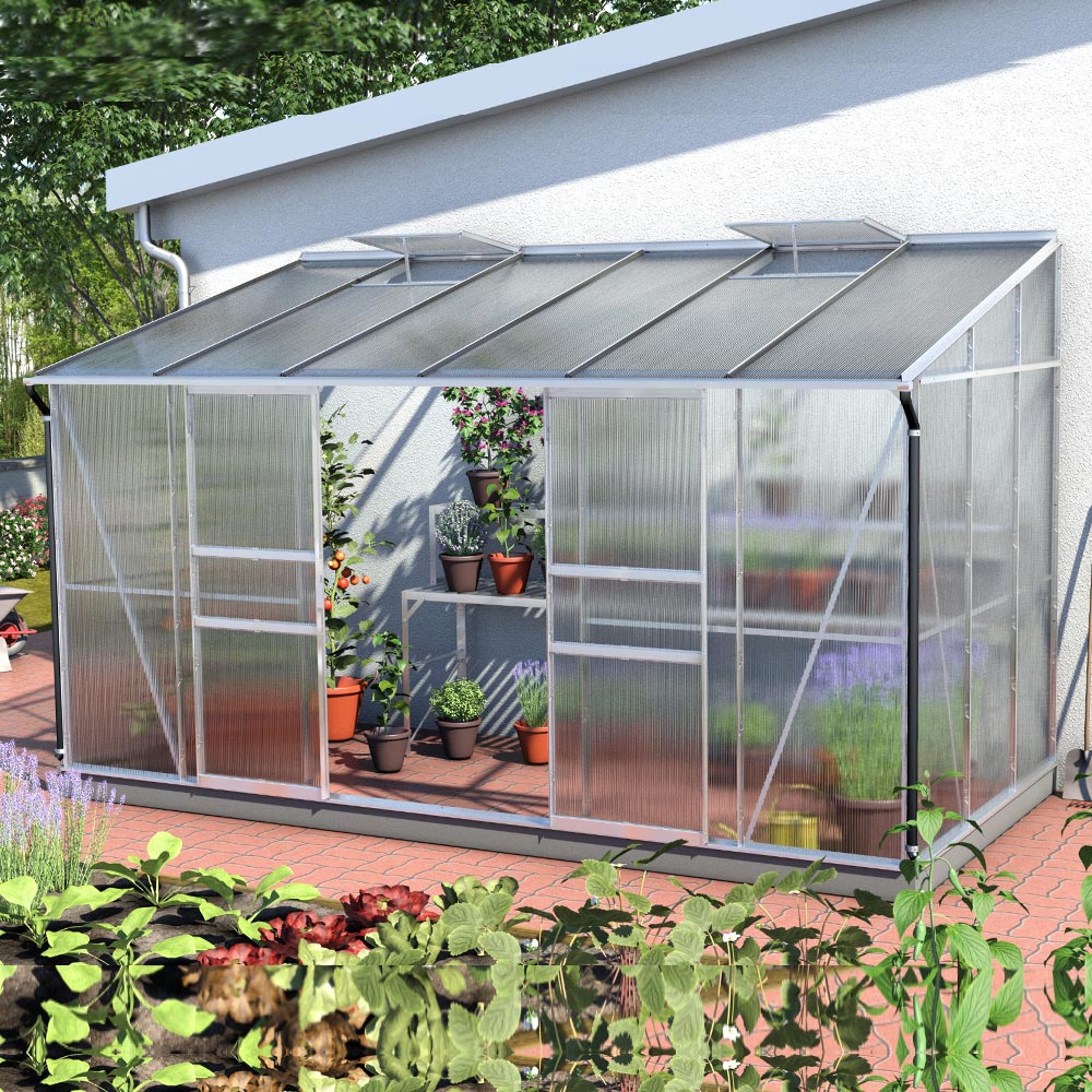 Vitavia Ida 7800 passer til haveejeren, der vil udnytte en mur på en smart måde. Ideel til dyrkning af krydderurter og tomater samt til overvintring af krukkeplanter i et beskyttet, lyst rum. Med et dyrkningsareal på 7,8 m² skaber dette design direkte op ad huset et effektivt mikroklima. Bagvæggen placeres op ad en eksisterende mur, hvilket giver en stabil og pladsbesparende opsætning.