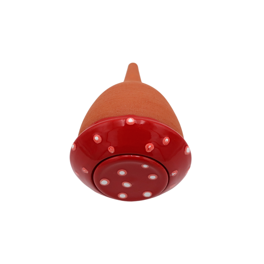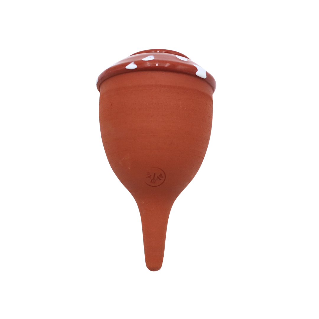Olla Bolet er en håndlavet vandgiver i terracotta formet som en svamp. Den placeres i pottejorden og sørger for, at planterne får vand langsomt og jævnt, direkte ved rødderne. Så kombinerer den praktisk brug med et legende, dekorativt design.
