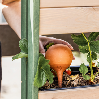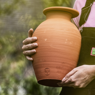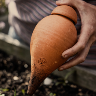 En Olla (udtales “Oyya”) er en uglaseret, porøs krukke, som du kan vande planter med. Idéen er enkel, men effektiv: Grav krukken ned mellem planterne, fyld den med vand, sæt låget på – og så er det klaret...