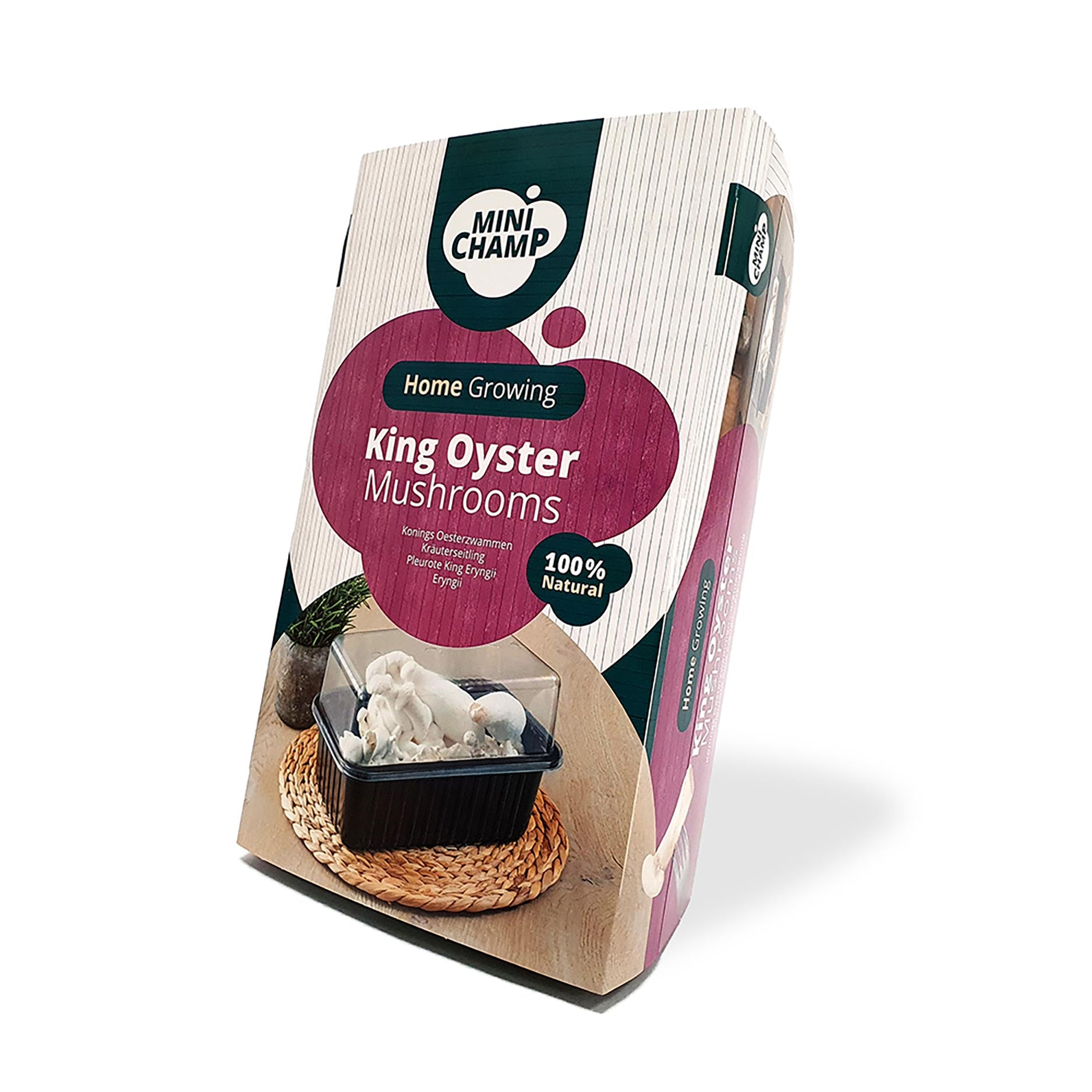 Dette dyrkningssæt indeholder en solid blok af træbaseret substrat, som er fuldt gennemvokset med mycelium fra kongøstersvamp. Efter åbning af emballagen og let fugtning af blokken viser de første små stokke sig inden for få dage. Disse udvikler sig til tykke, kødfulde svampe med en flot, fyldig smag. Efter høst kan blokken ofte aktiveres endnu en gang ved at forstøve den let, så De kan nyde en frisk høst flere gange.