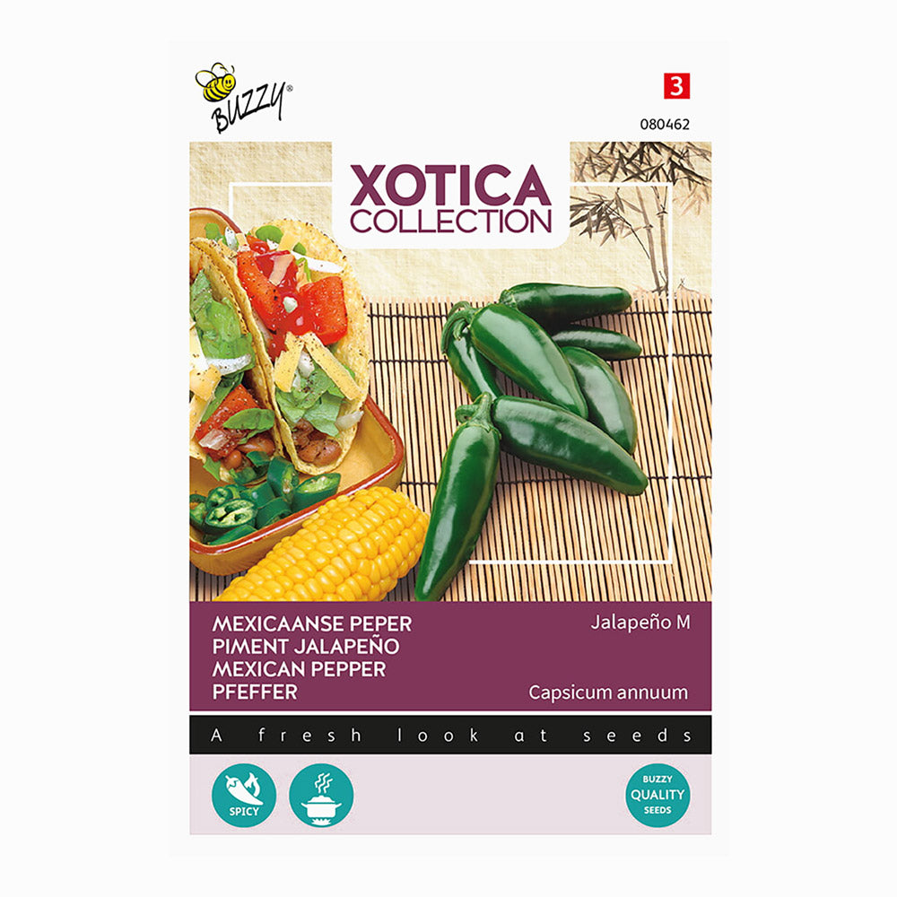 Jalapeñoen, berømt i det mexicanske køkken. Denne klart grønne chili, som ved modning kan blive rød, er elsket for sin stærke smag. De kan bruges til taco's, salsa's eller fyldte chili. Jalapeñoen egner sig godt til dyrkning i potter. Ideel til altan eller mindre haver.