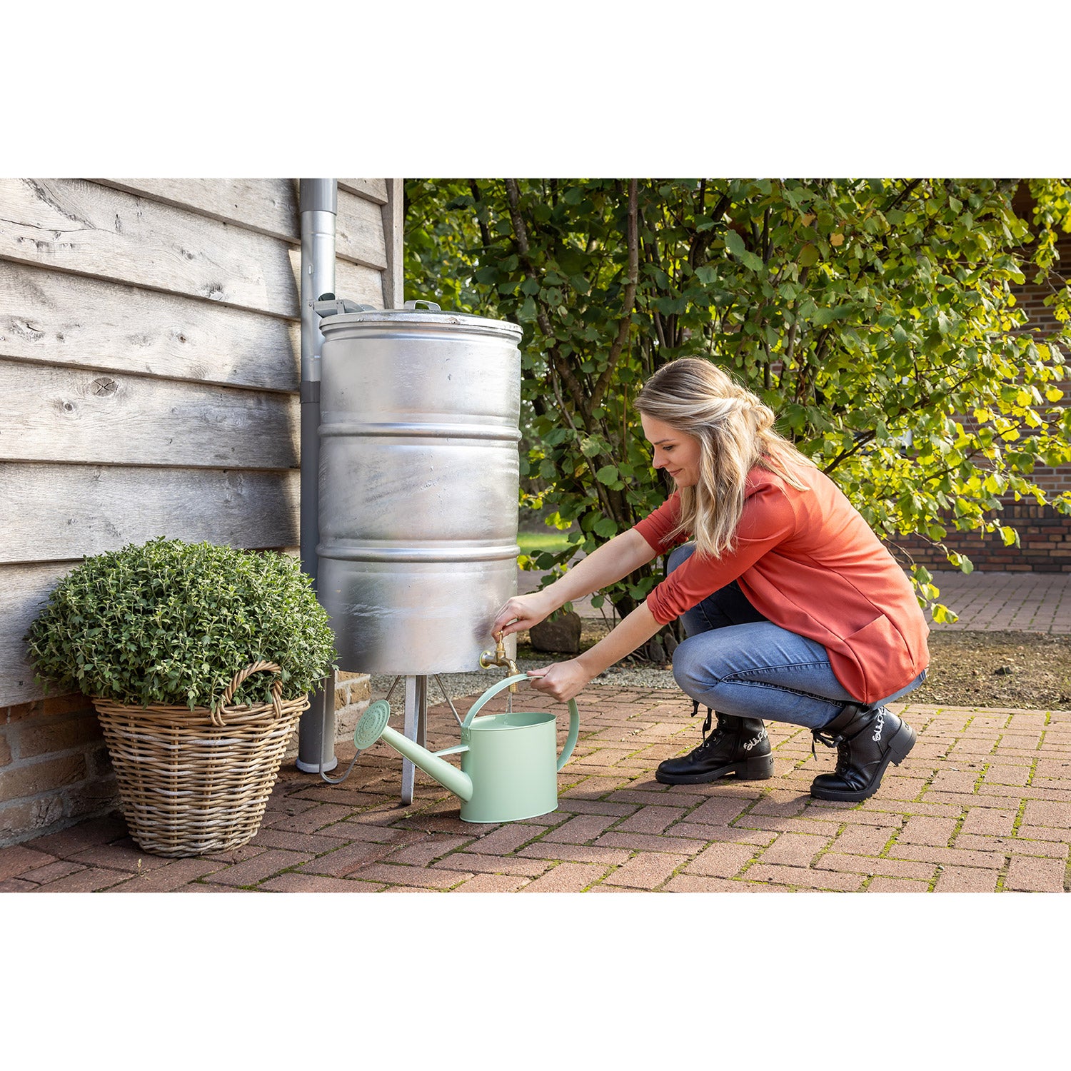 Regnvandstønden har en kapacitet på 95 liter og kombinerer funktionalitet med et autentisk, robust udtryk. Det zinkbelagte materiale giver tønden et tidløst præg, der passer flot i både en landlig og en moderne have. Takket være den medfølgende fod står tønden stabilt, og du får ekstra højde, så du nemt kan fylde en vandkande.
