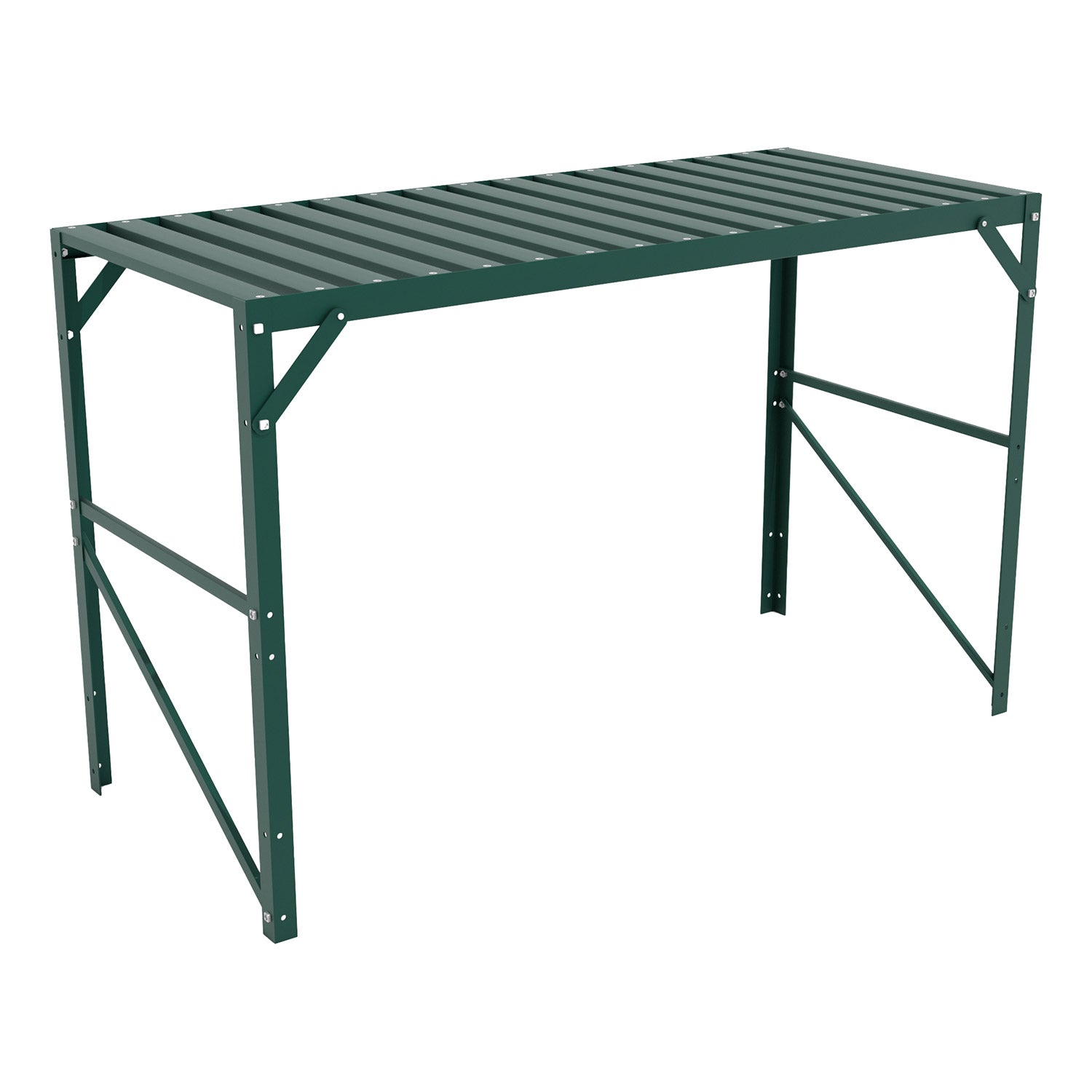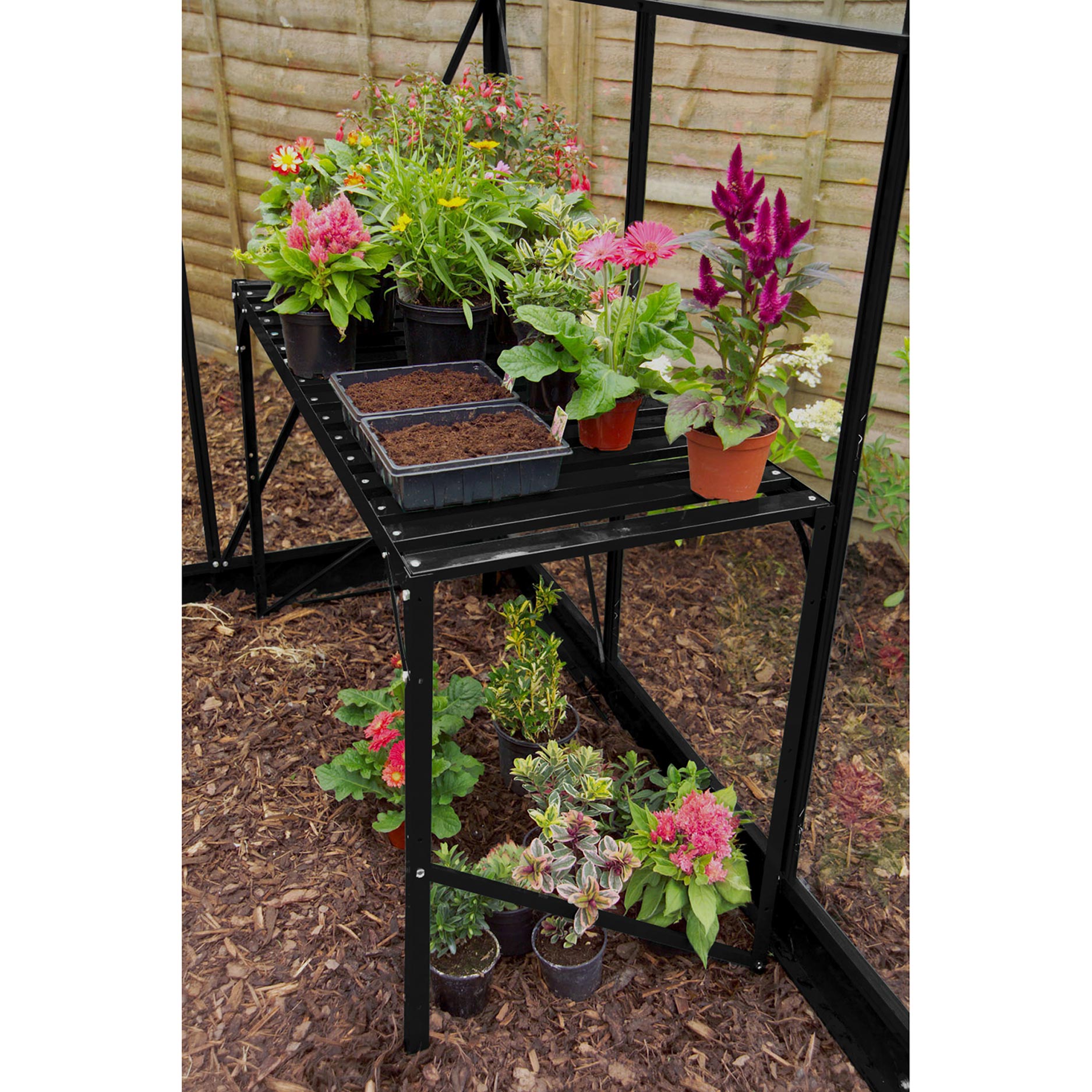 Brugen af det enkeltlags dyrkningsbord er enkel. Med sin rummelige arbejdsplade på 54 x 121 cm i en højde på 76 cm har du god plads til at placere planter, potter og haveredskaber overskueligt. Det ergonomiske design gør det behageligt at arbejde, samtidig med at du har alt, hvad du skal bruge, inden for rækkevidde. På den måde kan du hurtigt og effektivt så, ompotte og pleje dine planter uden at drivhuset bliver rodet.