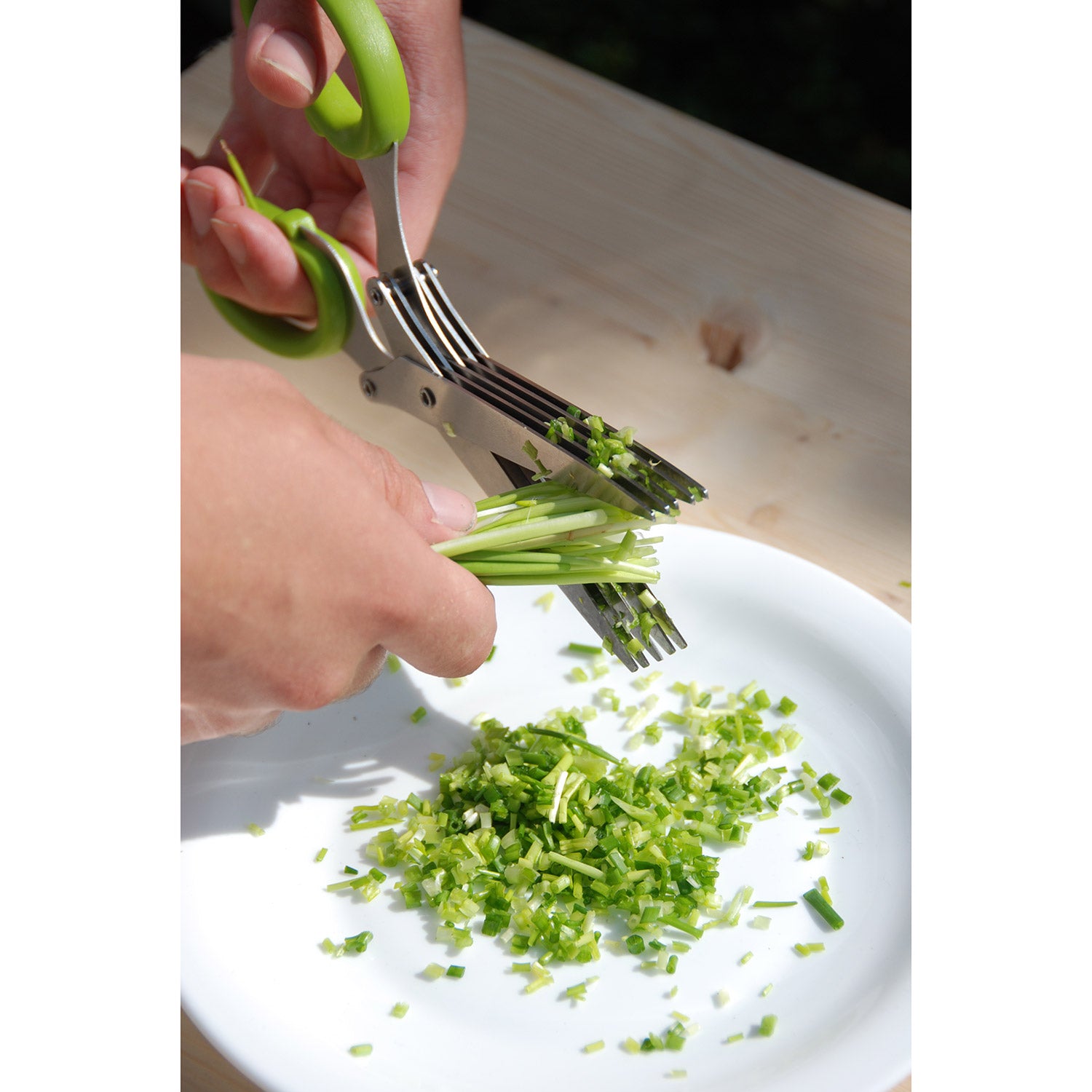 Friske krydderurter smager fantastisk og passer godt til mange forskellige retter. At snitte dem fint har aldrig været så hurtigt som med denne særlige krydderurtesaks. I stedet for en traditionel saks med to blade er denne saks udstyret med ti blade. På den måde kan purløg og andre krydderurter klippes hurtigt og ensartet uden at blive mast.
