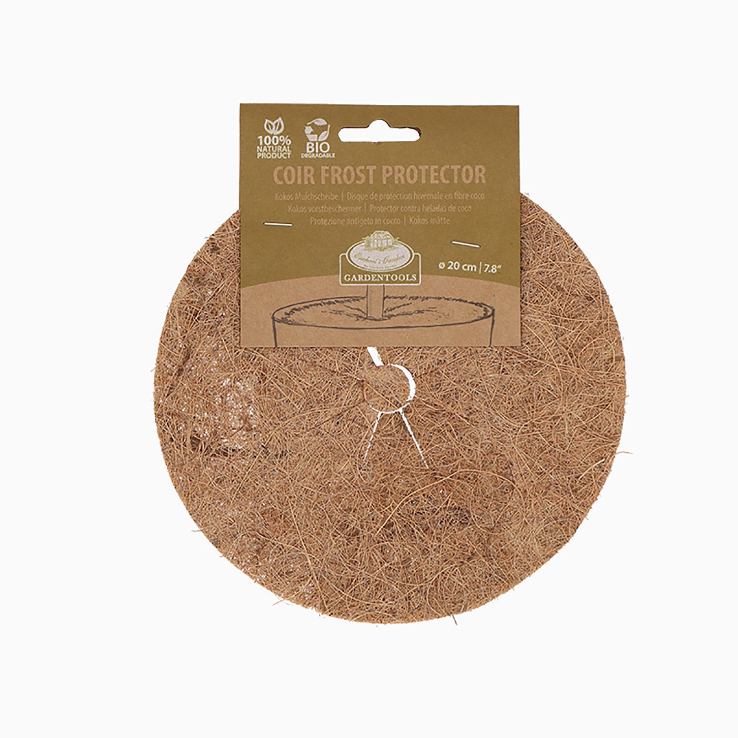 Frostbeskytteren af kokos er en naturligt isolerende skive af 100% kokosfiber, særligt beregnet til at beskytte planter mod kulde, udtørring og ukrudt. Med flere størrelser er disse skiver velegnede til både potteplanter og havebede. Kokosfiber er åndbart og fugtregulerende, hvilket gør det til en ideel beskyttelse af rødder og jord.