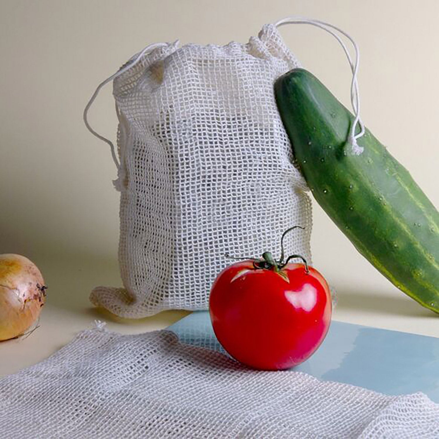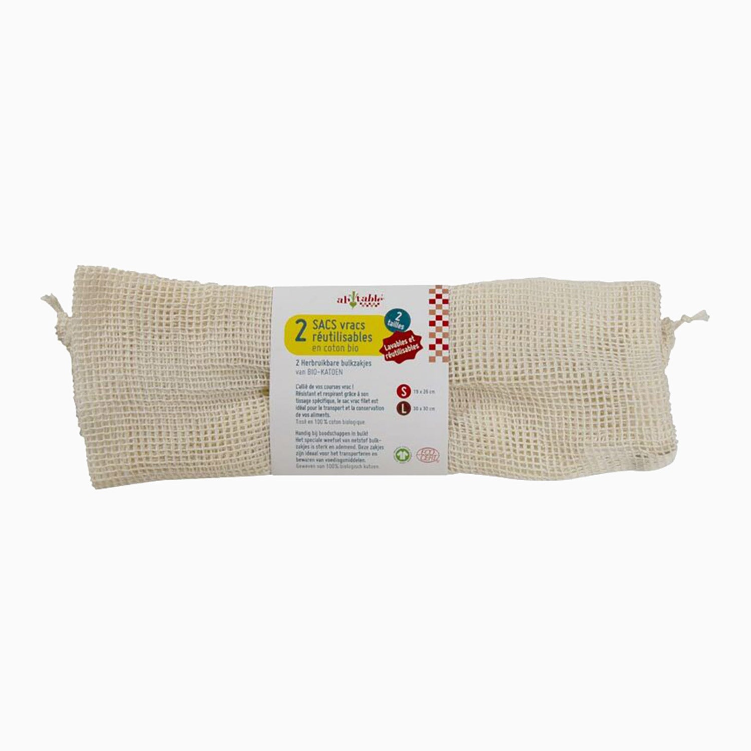 Den holdbare netpose er fremstillet af bomuld og er åndbar. Ideel til transport og opbevaring af fødevarer i løs vægt, frugt og grøntsager.